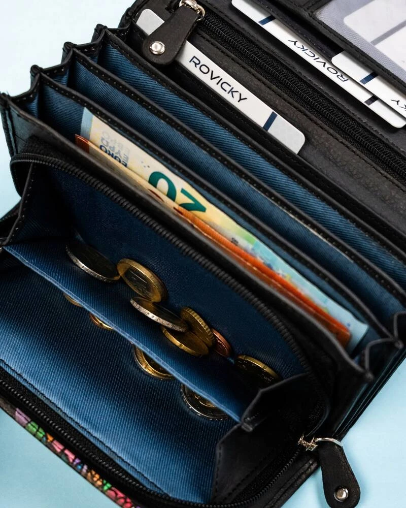 Dzięki liczebności schowków portfel idealnie nada się do przechowywania kilku walut. Bez problemu możesz je rozdzielić, aby nie uległy pomieszaniu.