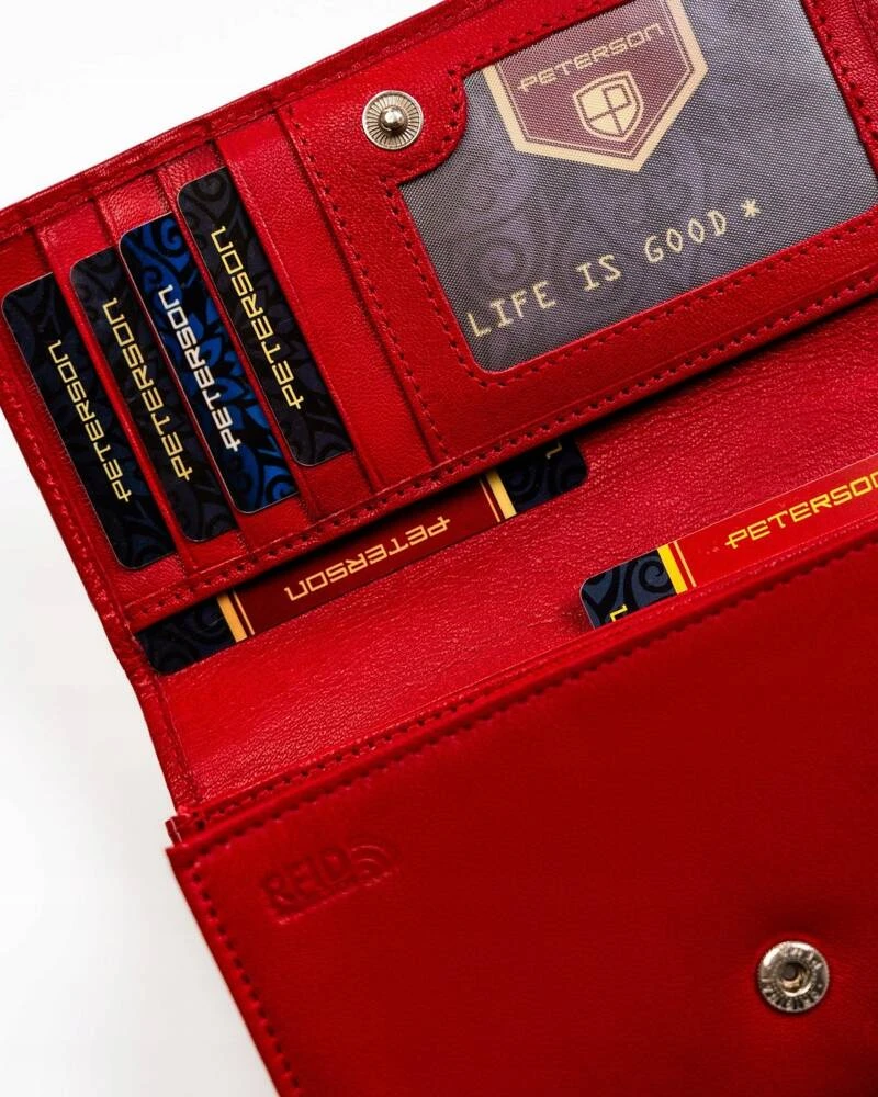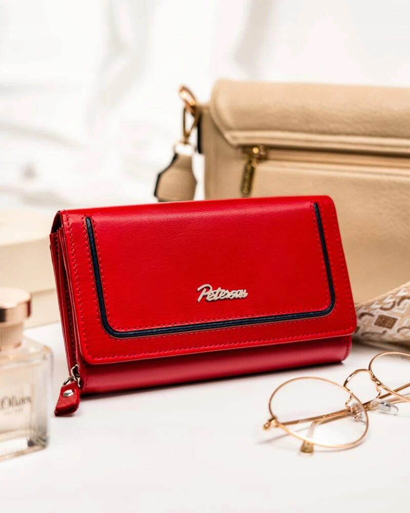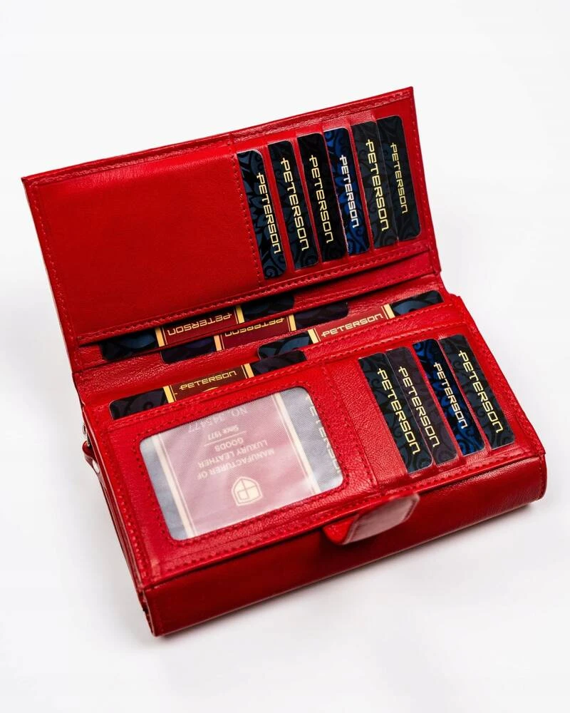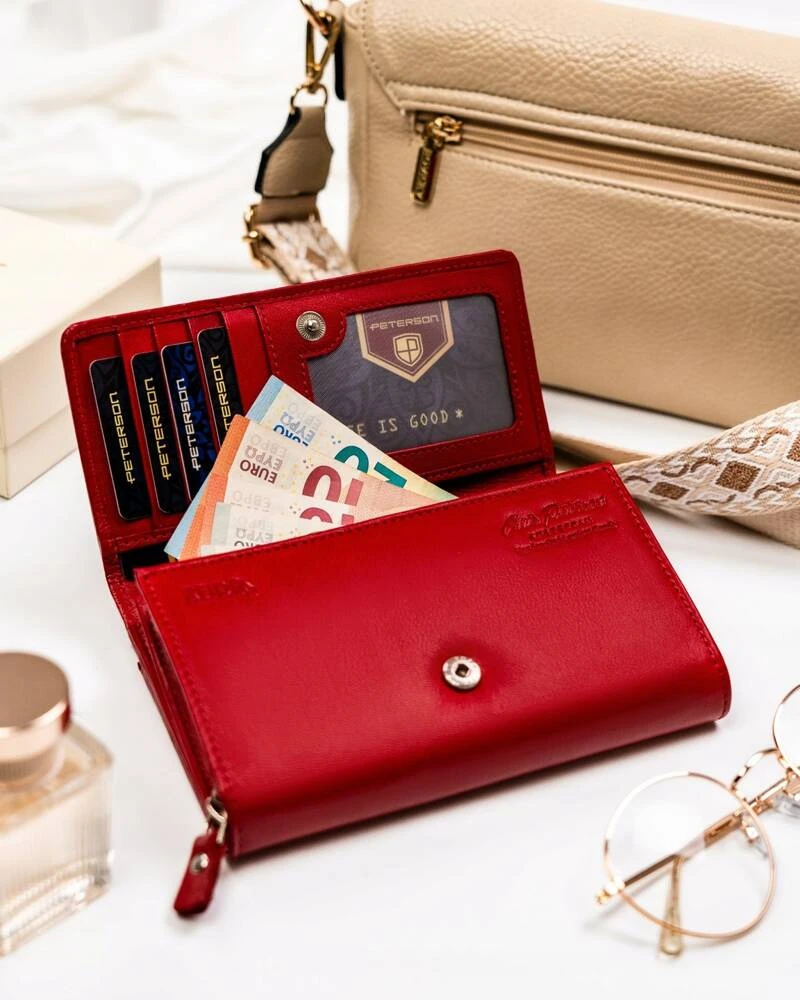 Duży, skórzany portfel damski na zatrzask i suwak - Peterson