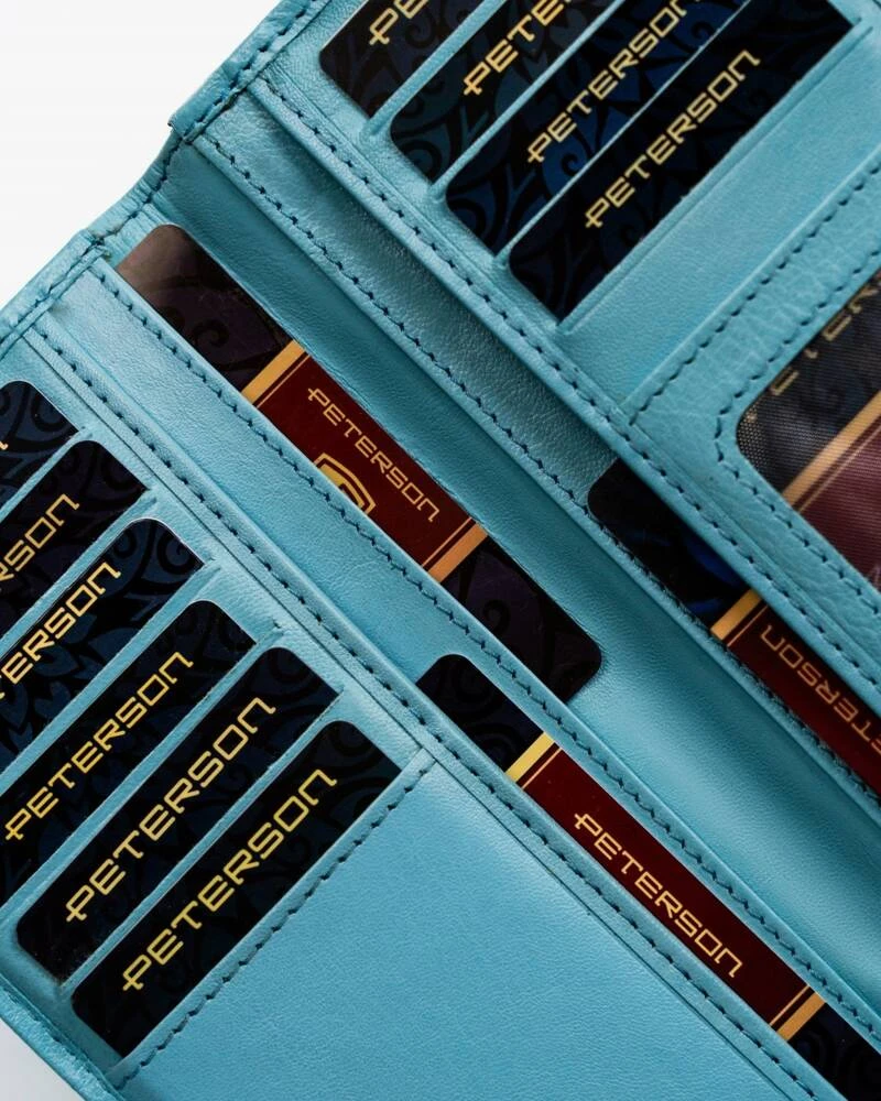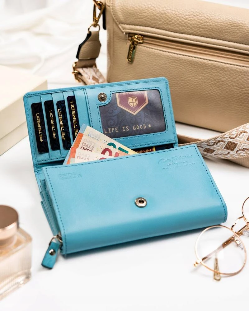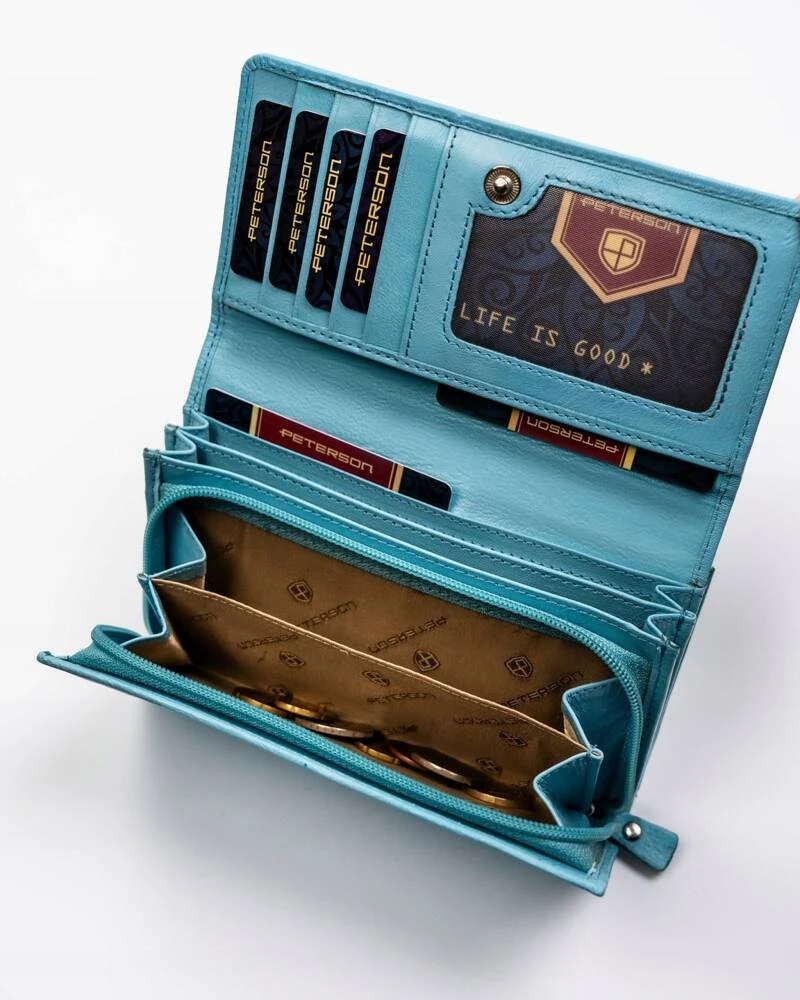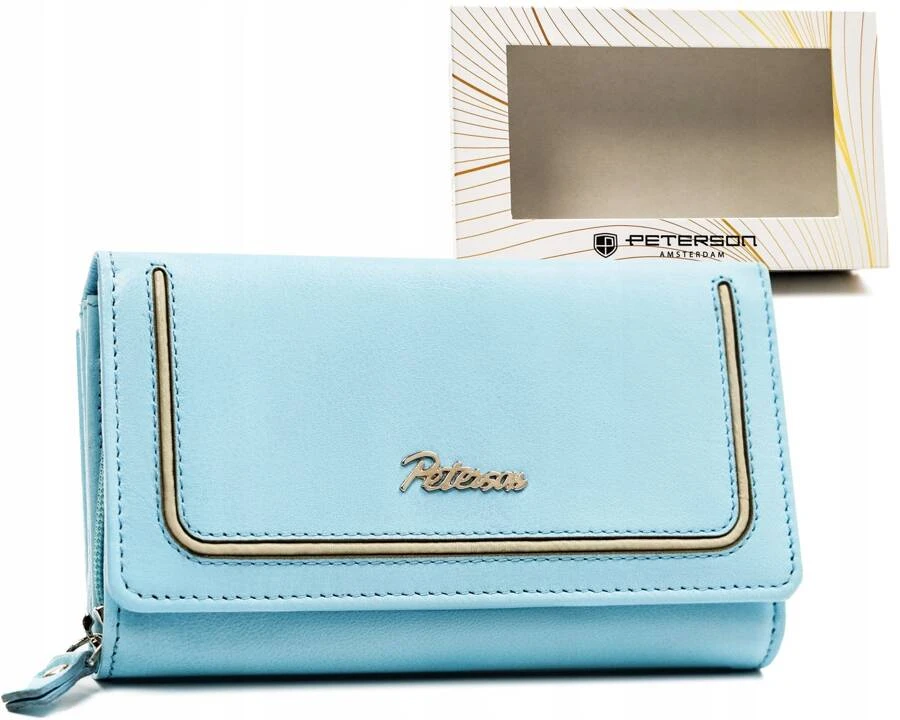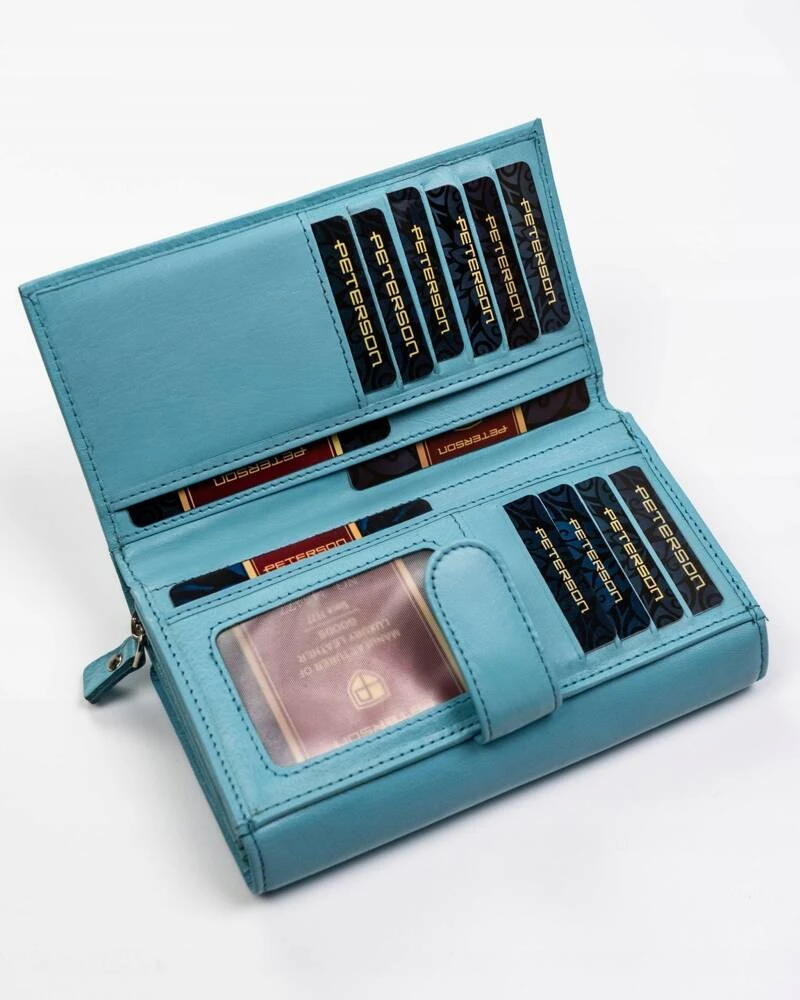 Duży, skórzany portfel damski na zatrzask i suwak - Peterson