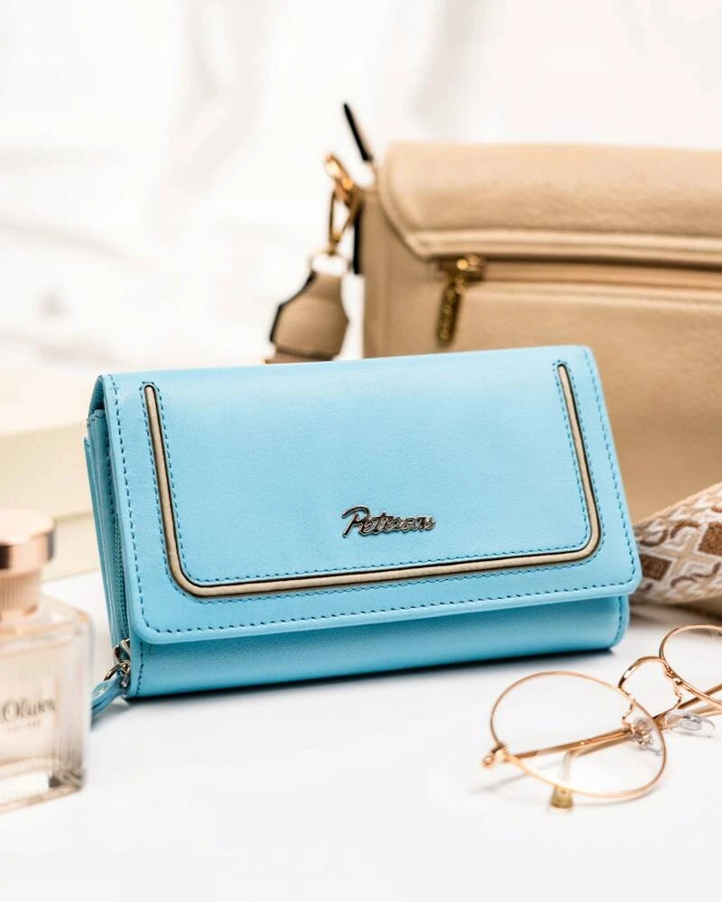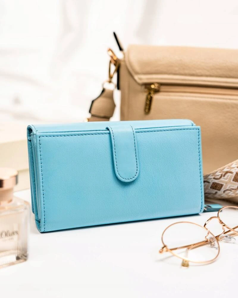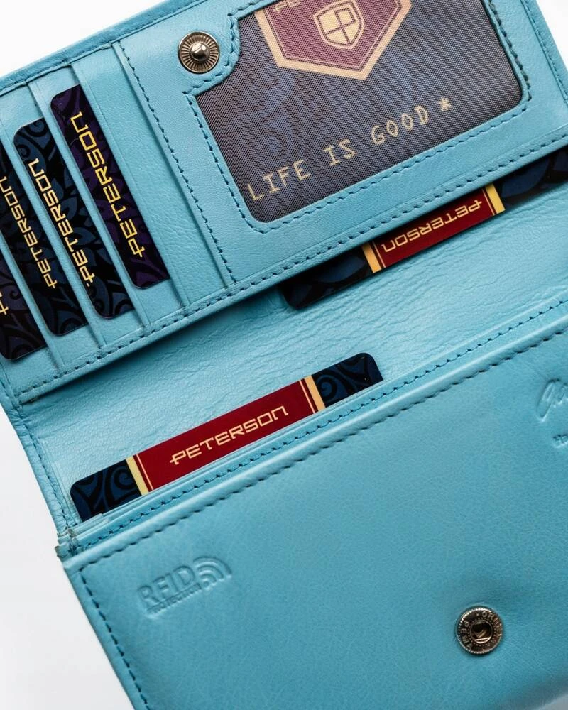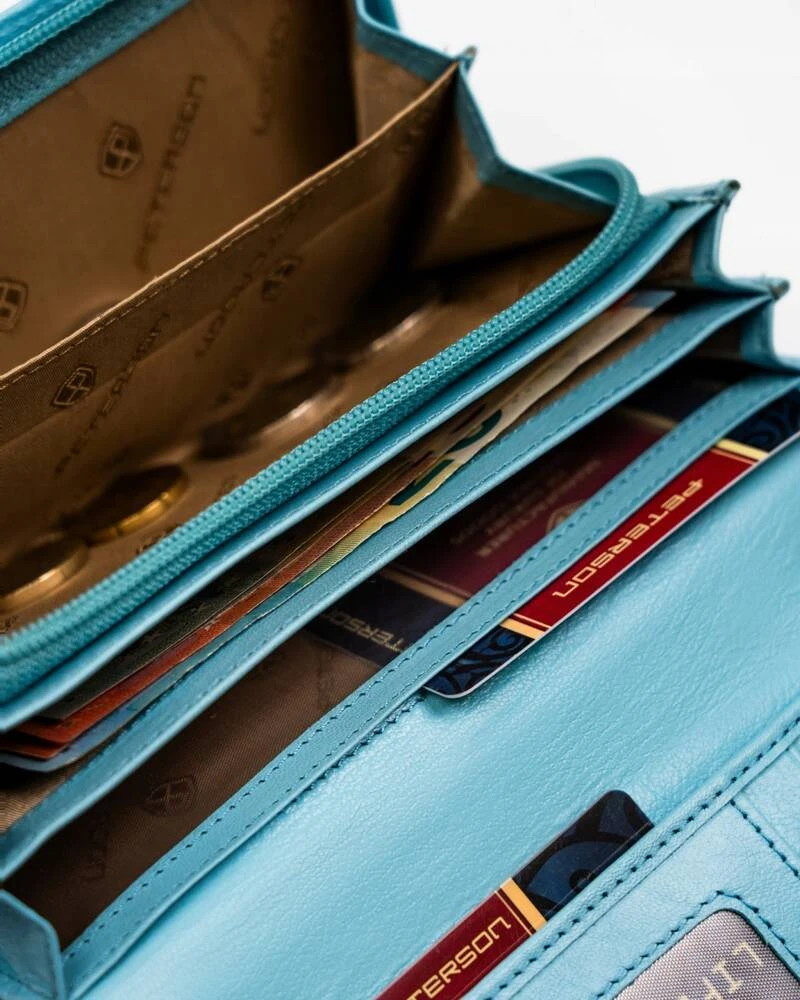 Duży, skórzany portfel damski na zatrzask i suwak - Peterson