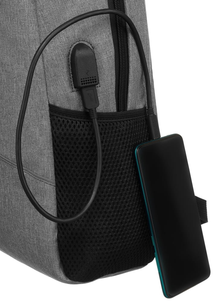 - Port USB i kabel USB | W środku plecaka znajduje się kabel USB, natomiast z boku plecaka znajduje się port USB, który możesz wykorzystać do ładowania telefonu, tableta i innych urządzeń;