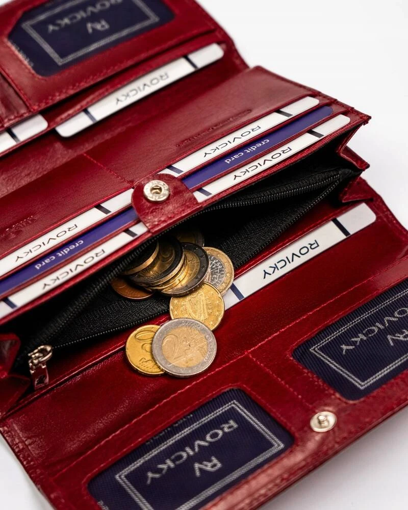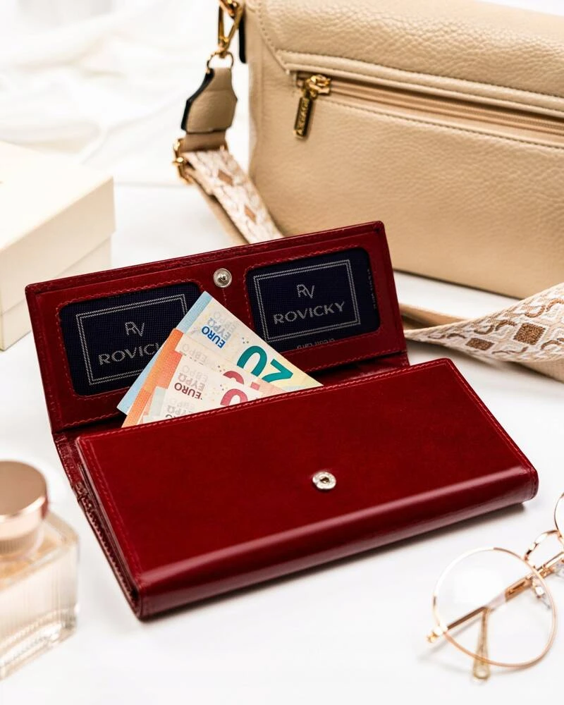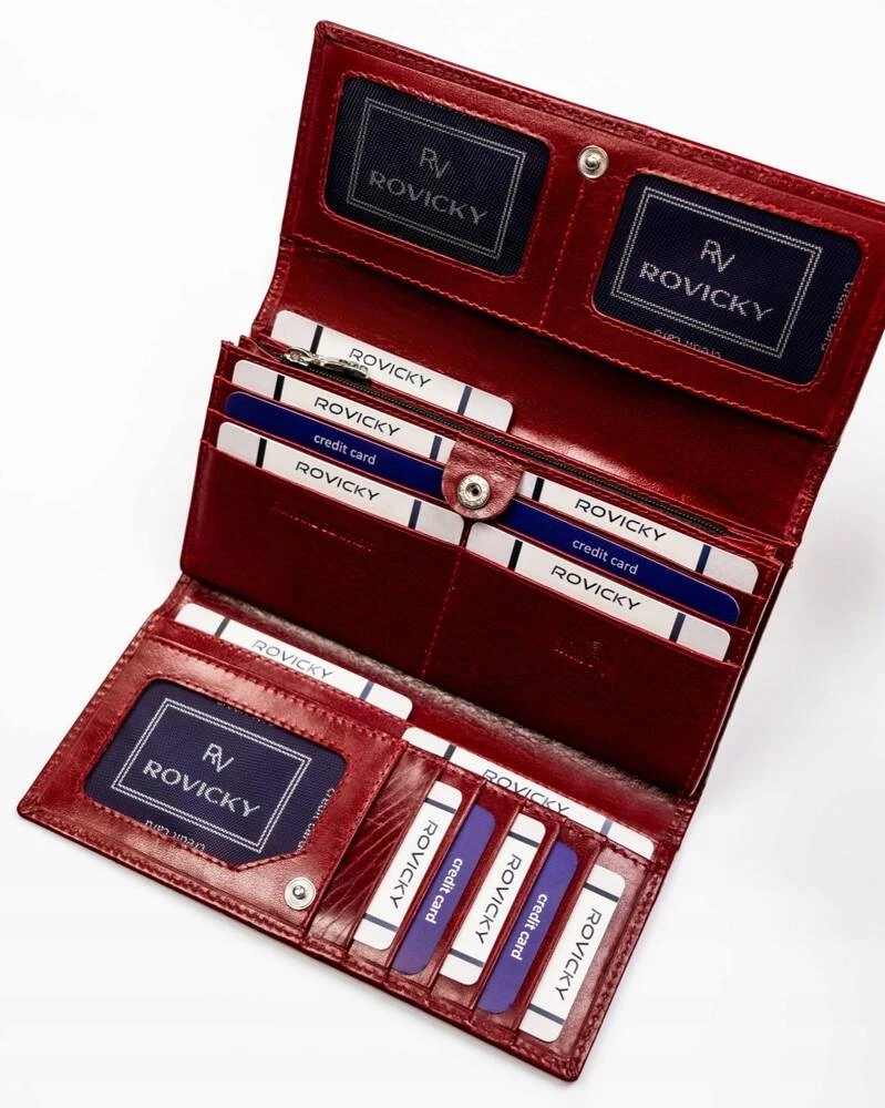 Duży, wygodny portfel damski ze skóry naturalnej z systemem RFID - Rovicky