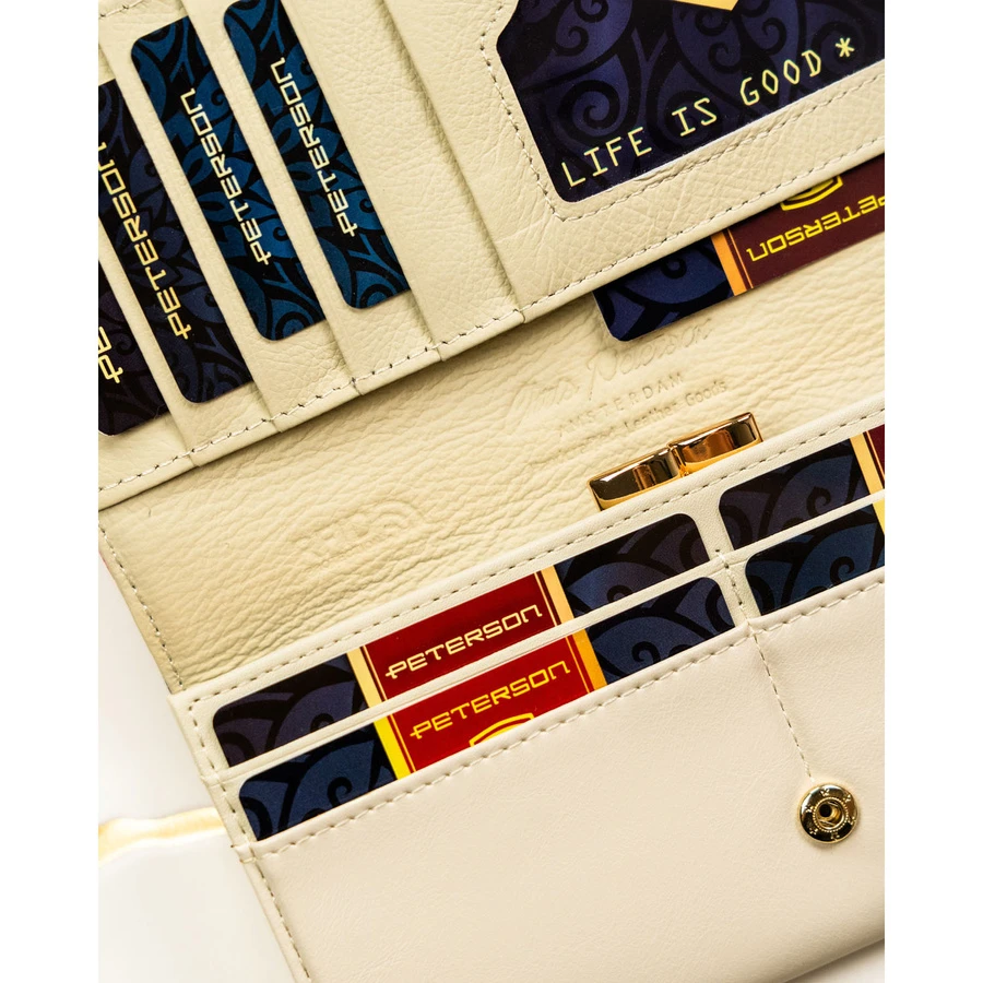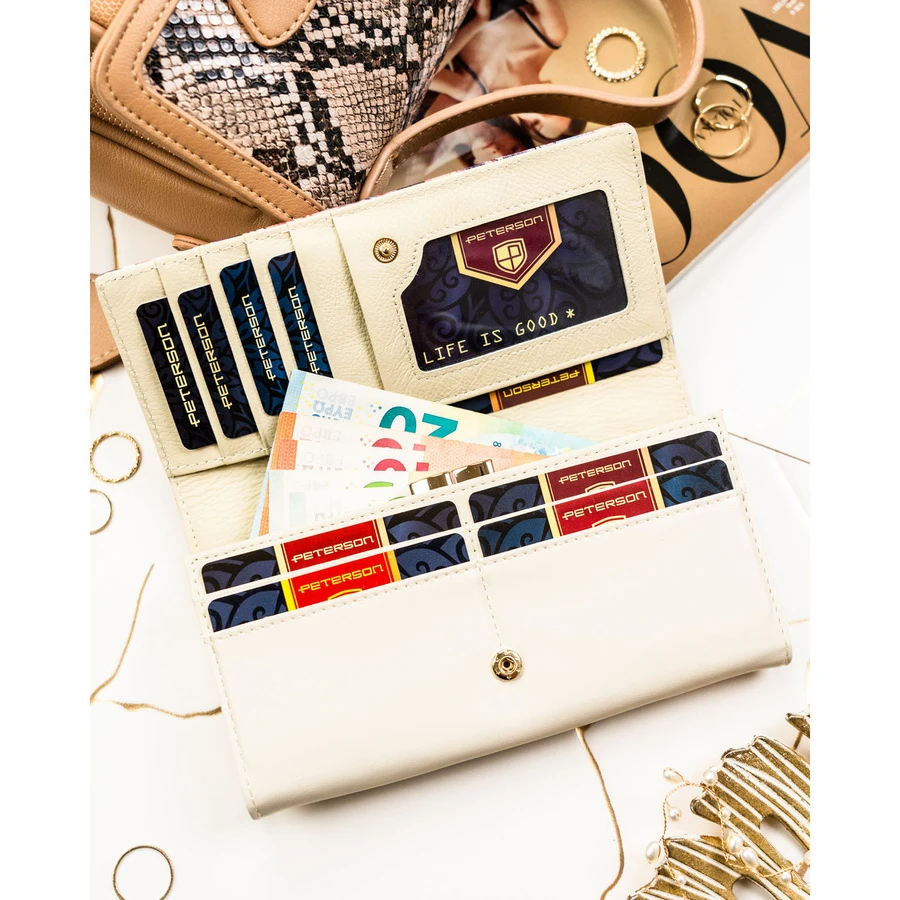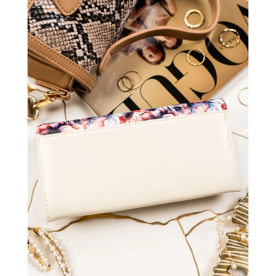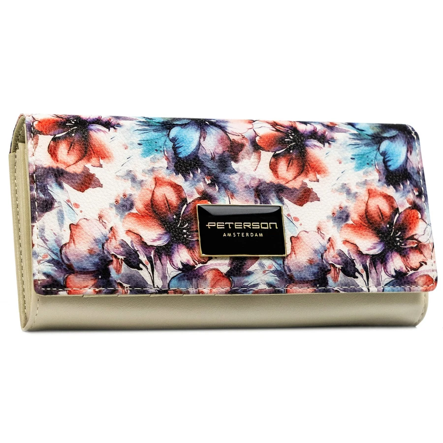 Duży portfel damski w kwiaty wykonany ze skóry naturalnej i ekologicznej z systemem RFID - Peterson
