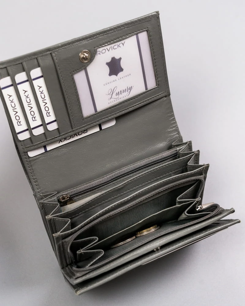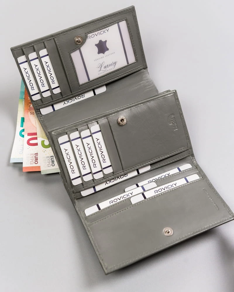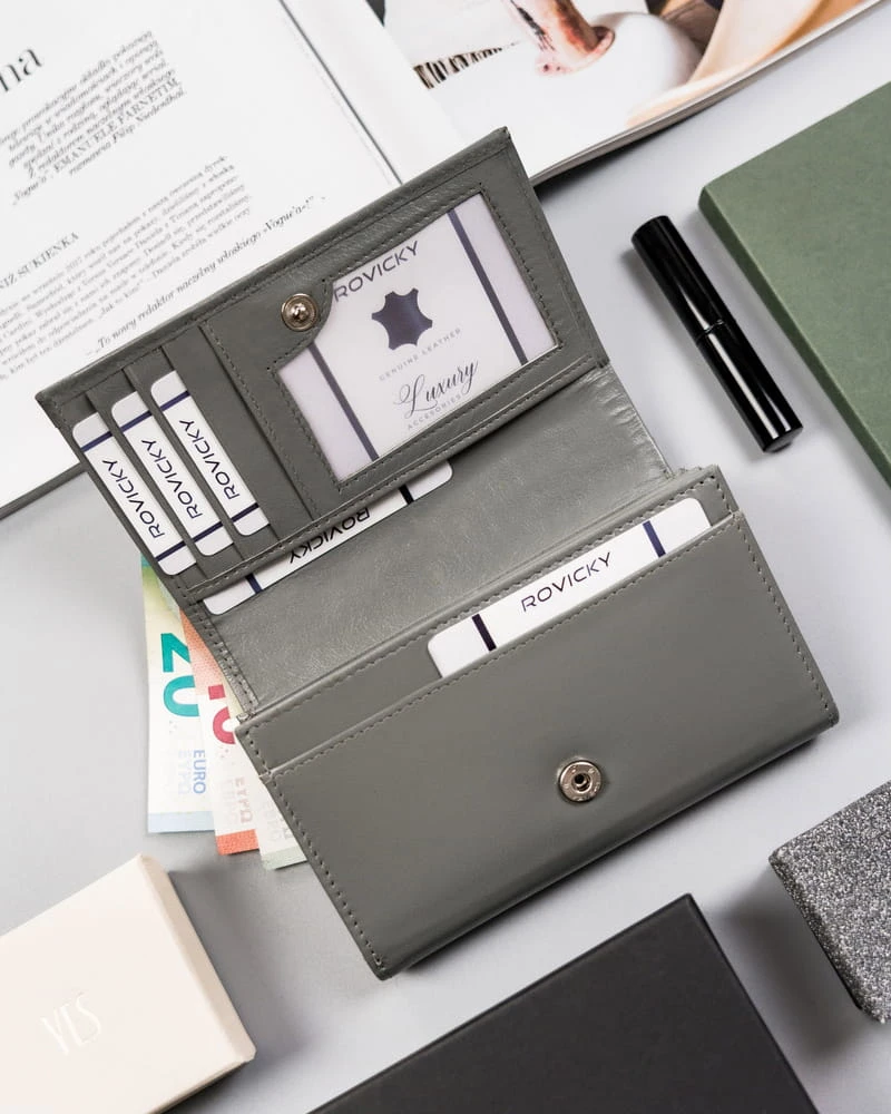 Duży portfel damski z bydlęcej skóry naturalnej - Szary to stylowy portfel damski marki 4U Cavaldi wykonany ze skóry ekologicznej w kolorze uniwersalny. Idealny na co dzień – łączy elegancję z funkcjonalnością.