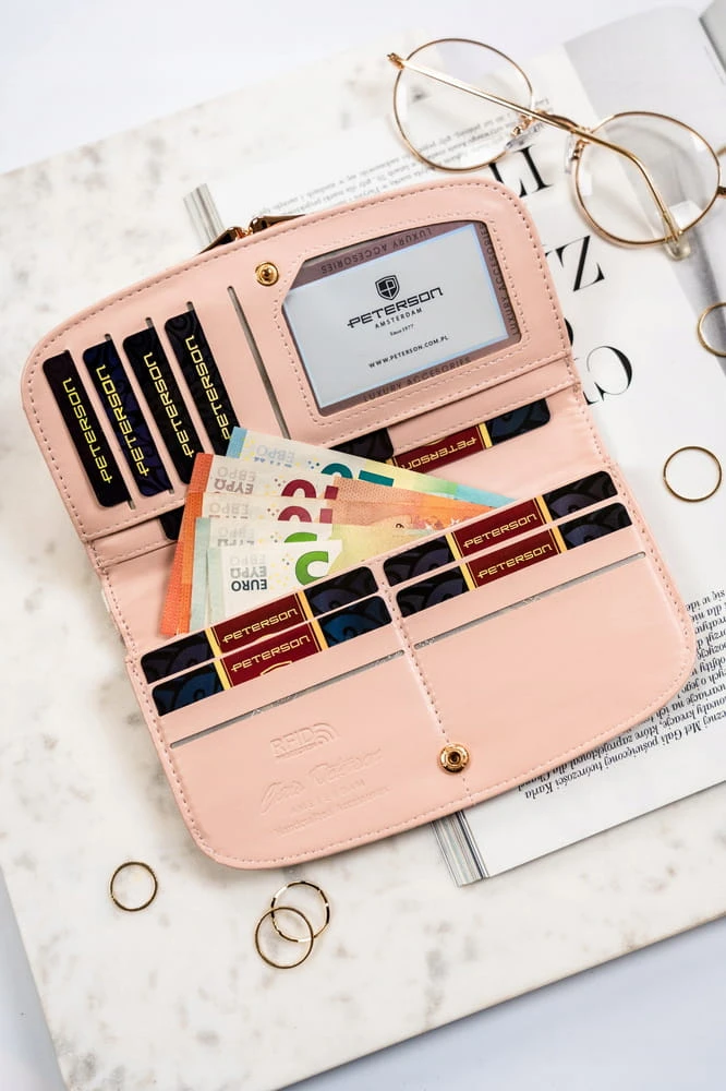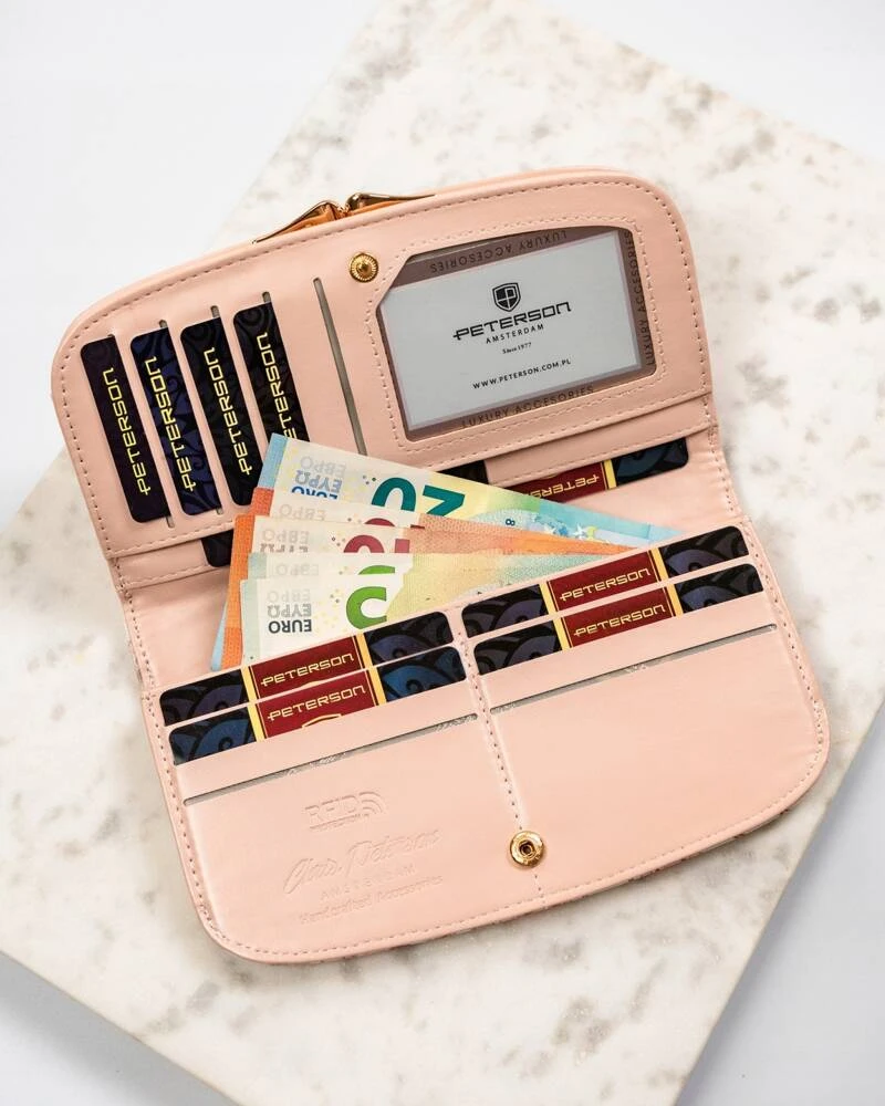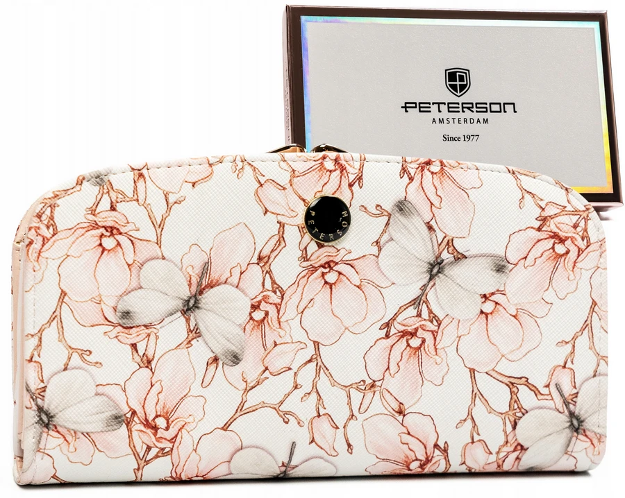 Duży portfel damski ze skóry ekologicznej w kwiatowy wzór - Peterson