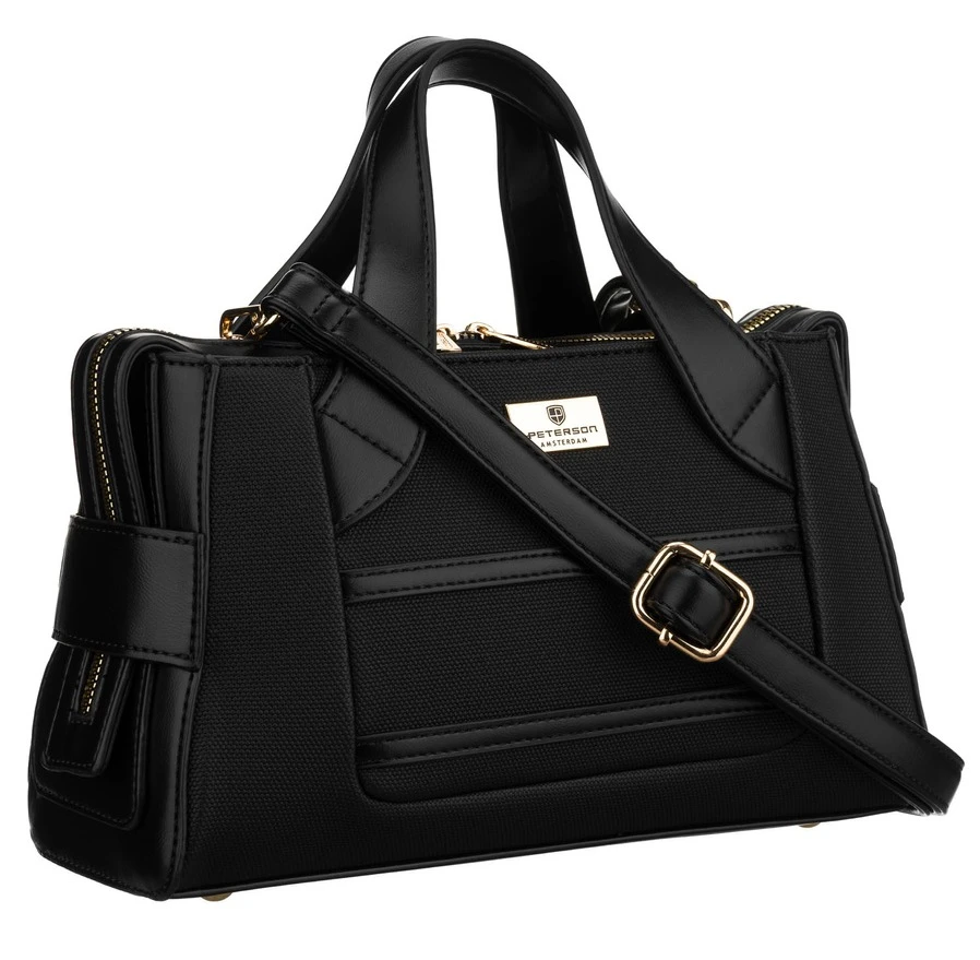 Elegancka, czarna torebka damska wykonana z materiału syntetycznego, zamykana suwakiem - Peterson