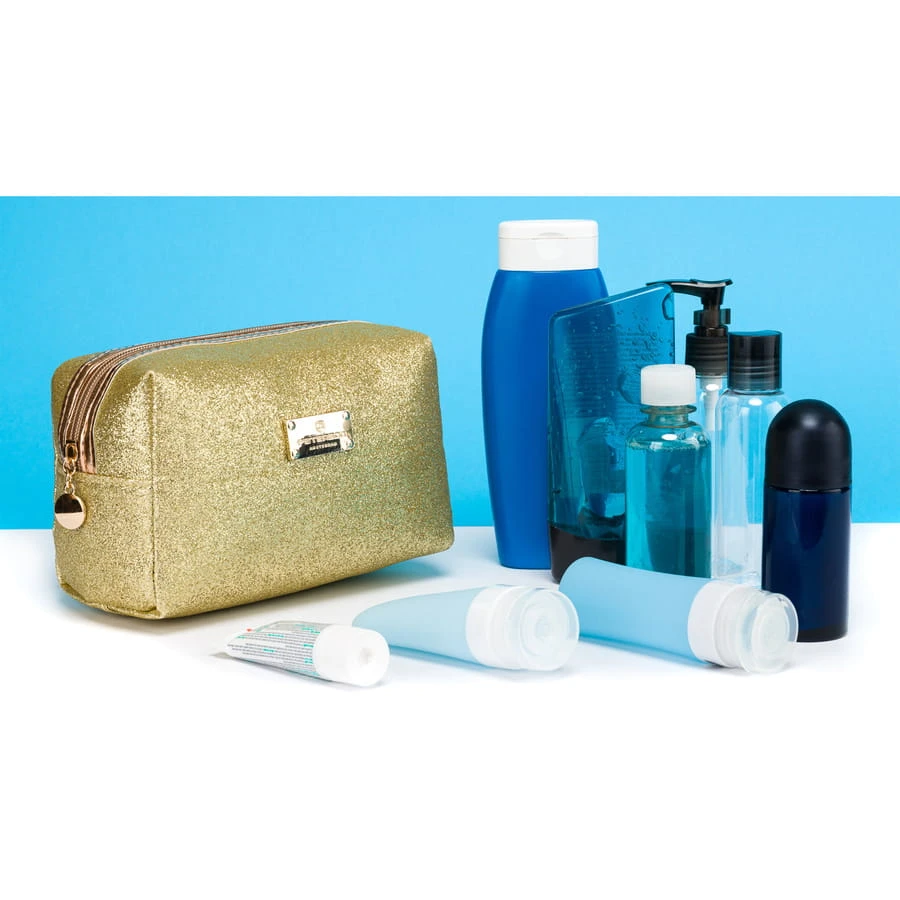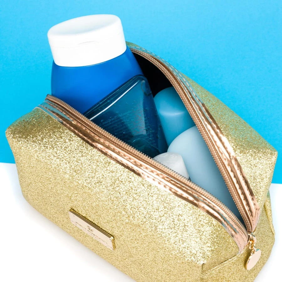 - Idealnie zaprojektowana | Kosmetyczka o kompaktowym rozmiarze i prostokątnym kształcie, zamykana na solidny metalowy suwak.