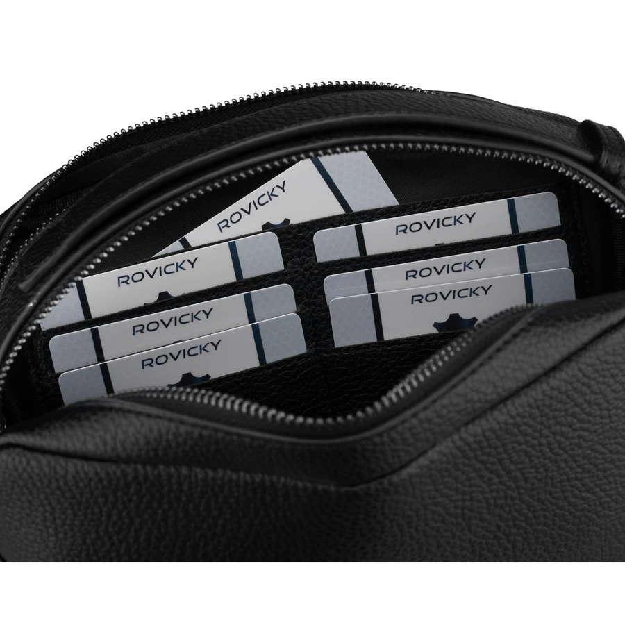 Elegancka męska saszetka Rovicky z ekoskóry – czarna, zamykana na suwak | praktyczna i stylowa torba na co dzień – niua.pl, darmowa dostawa