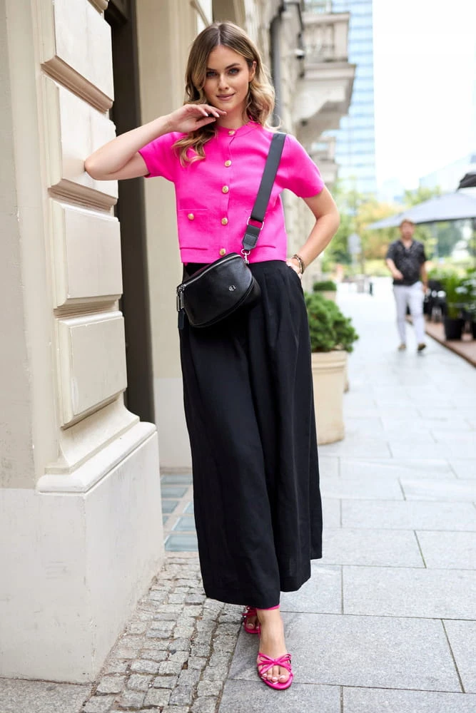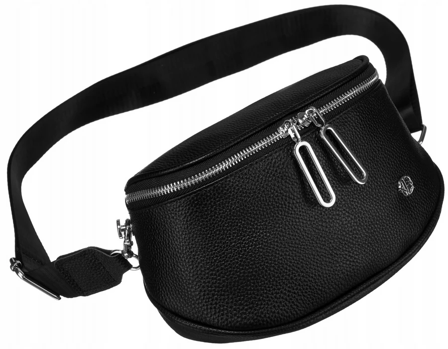 Do saszetki dołączony jest szeroki pasek w kolorze torebki, o długim zakresie regulacji. Dzięki temu będzie idealnie dopasowana niezależnie od wzrostu i sylwetki. Na jego końcach zostały przymocowane karabińczyki, za sprawą których można sprawnie wypiąć pasek.
