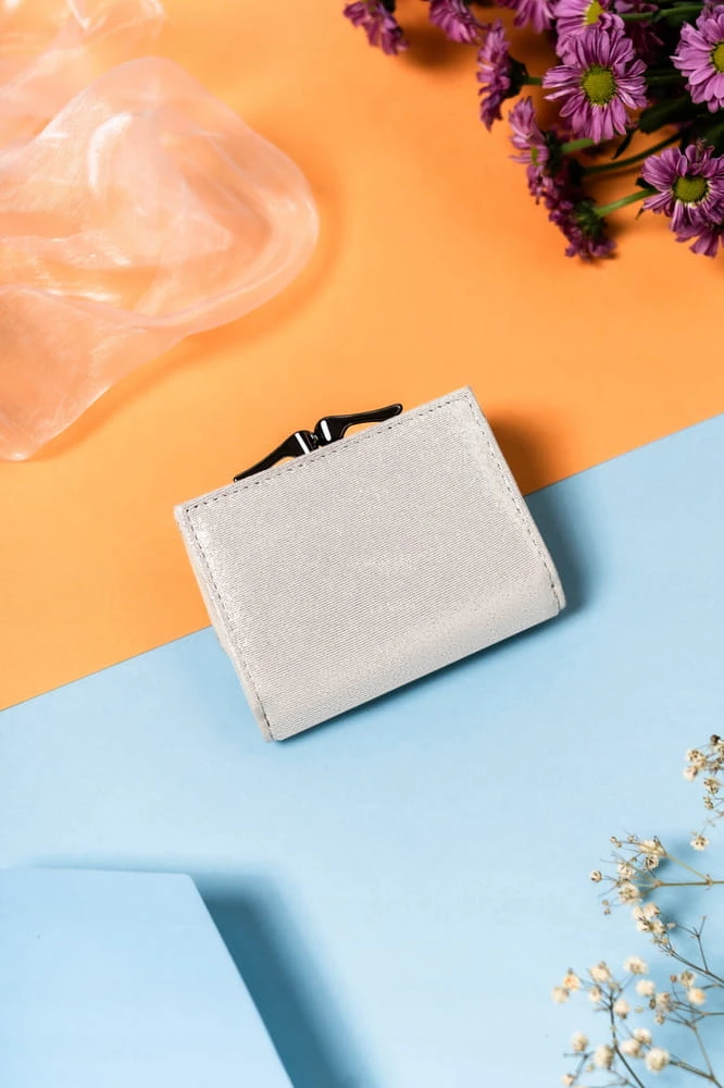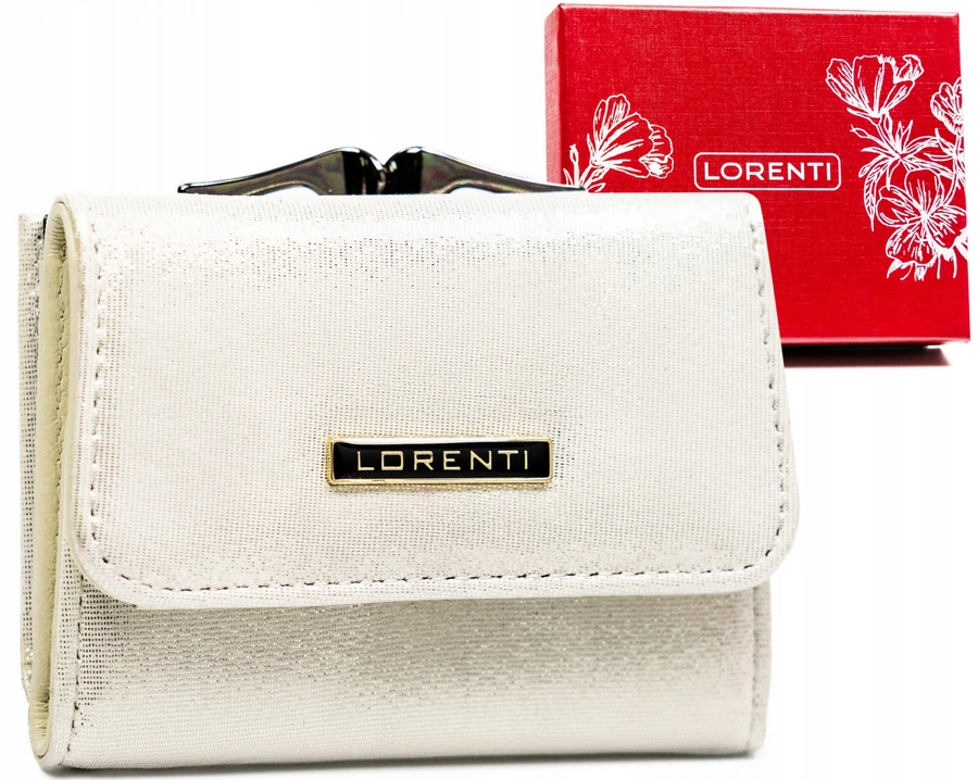 Elegancki, mały portfel damski na zatrzask i bigiel - Lorenti