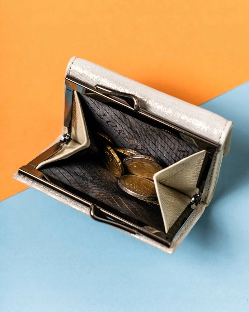 - Kieszeń na bilon: Przestronna kieszeń z zatrzaskiem, idealna do przechowywania monet.