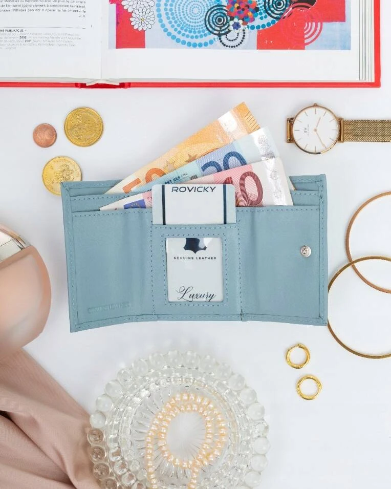 Elegancki portfel damski na zatrzask ze skóry naturalnej - Rovicky