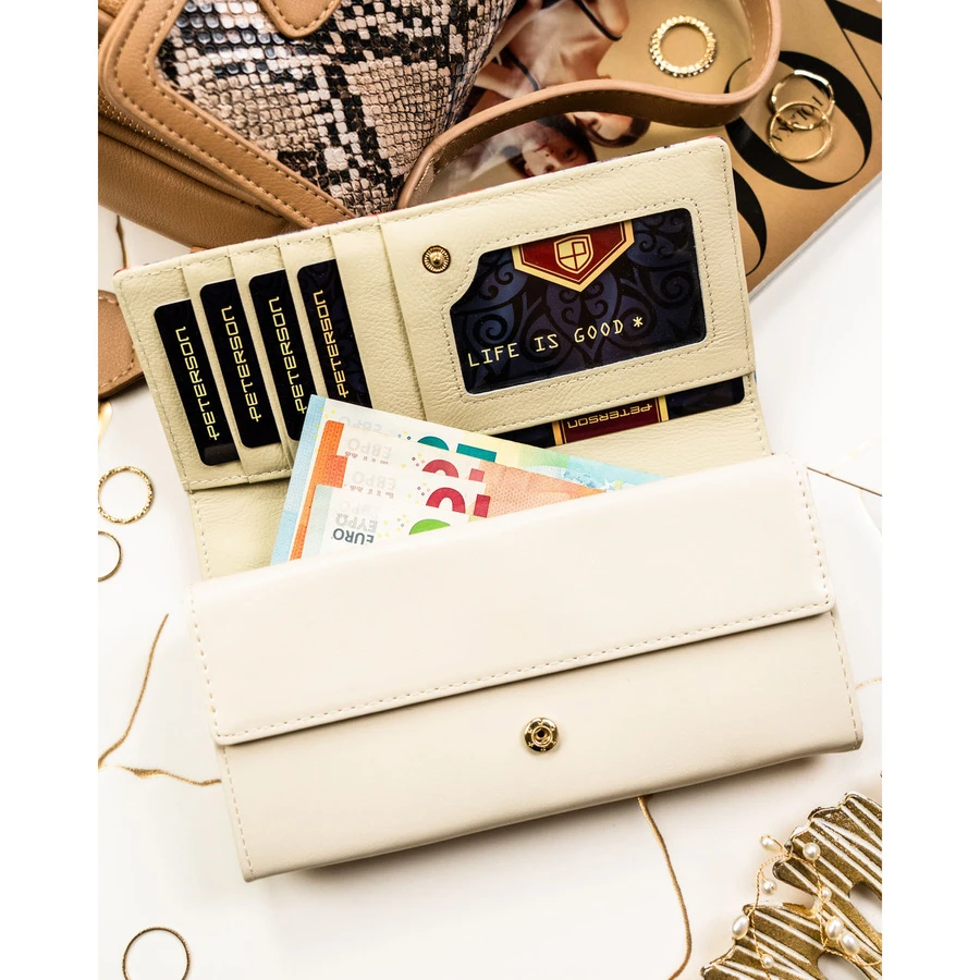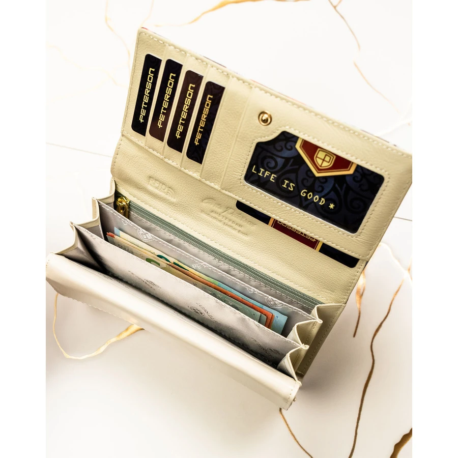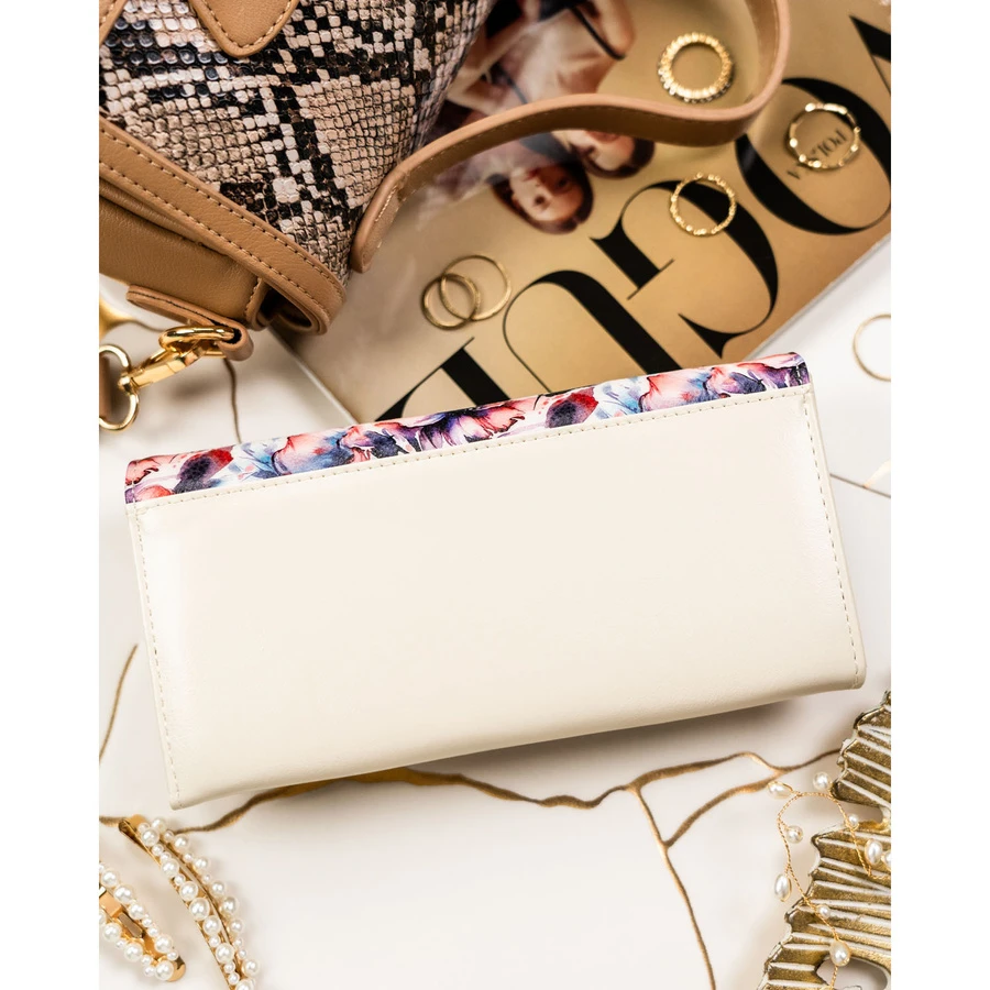 Elegancki portfel damski w kwiaty wykonany ze skóry naturalnej i ekologicznej - Peterson