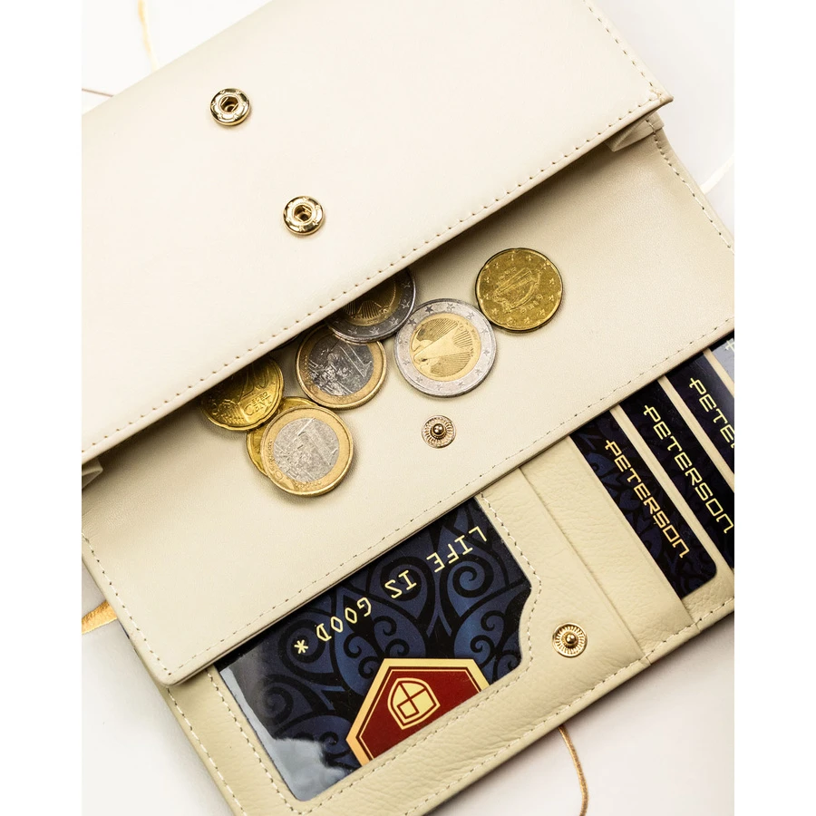 - Obszerna kieszeń na bilon zamykana jest na wygodny zatrzask i została zaprojektowana tak, aby z łatwością pomieścić większą ilość monet.