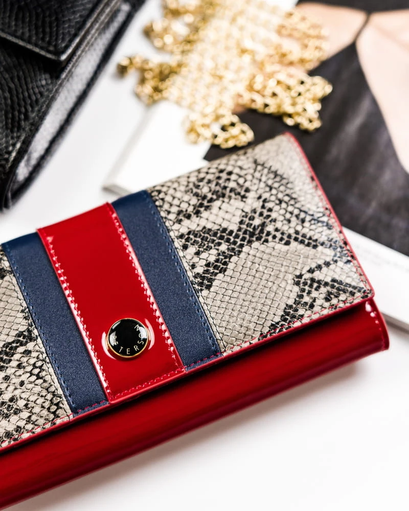 Elegancki portfel damski z wężowym wzorem — Peterson
