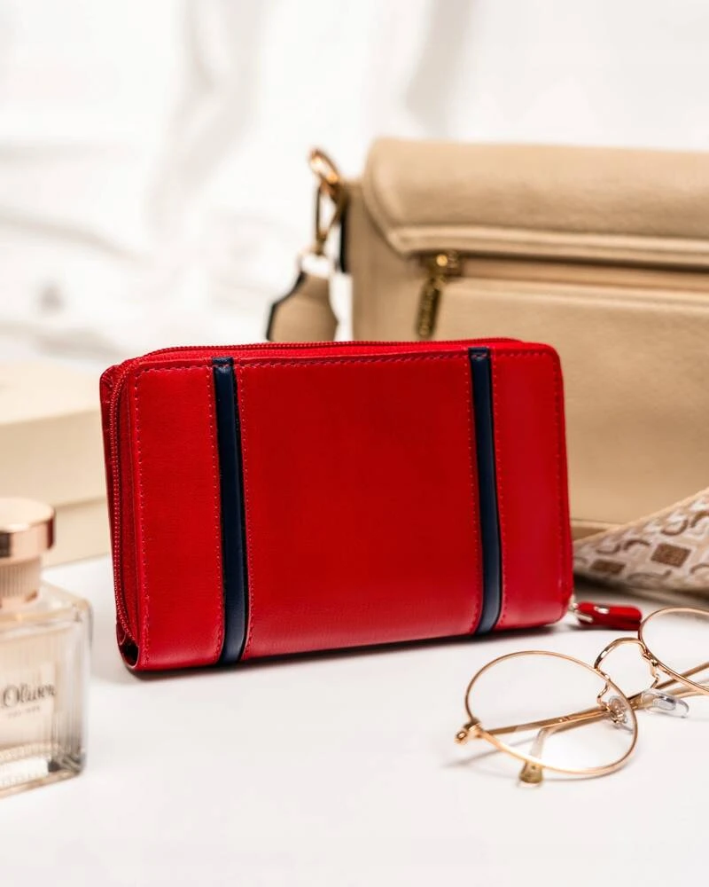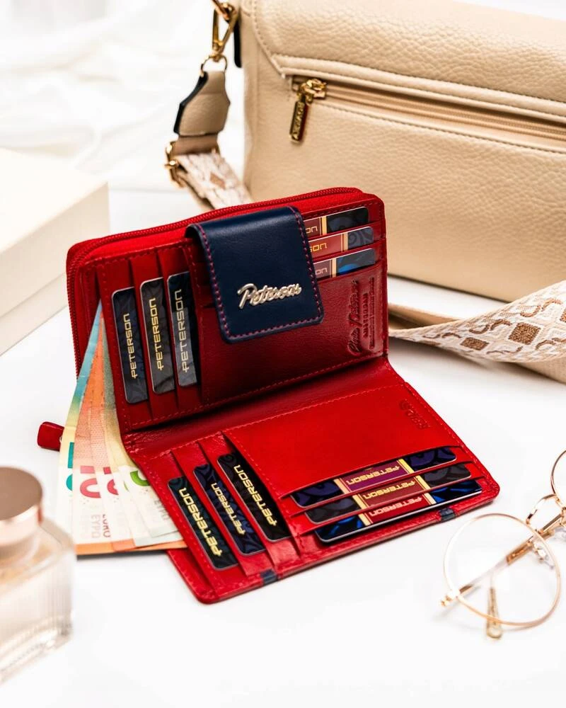 Elegancki skórzany portfel damski na zatrzask i suwak - Peterson