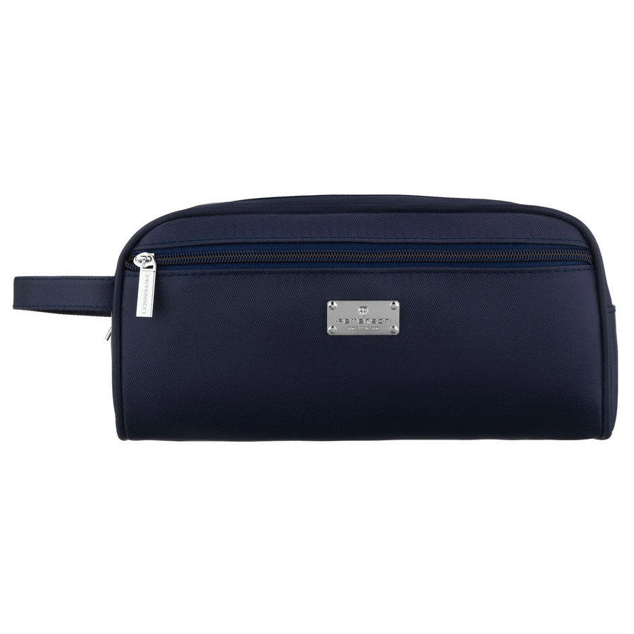 Granatowa kosmetyczka z tkaniny syntetycznej, jednokomorowa i zamykana suwakiem - Peterson