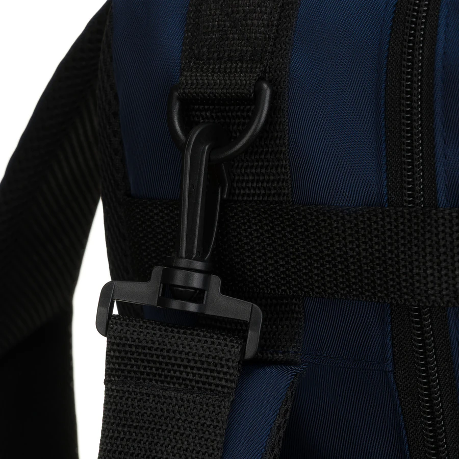 - Regulowany, dopinany pasek pozwala nosić plecak jak torbę podróżną.