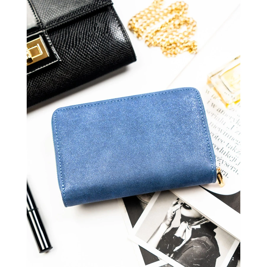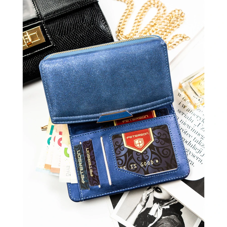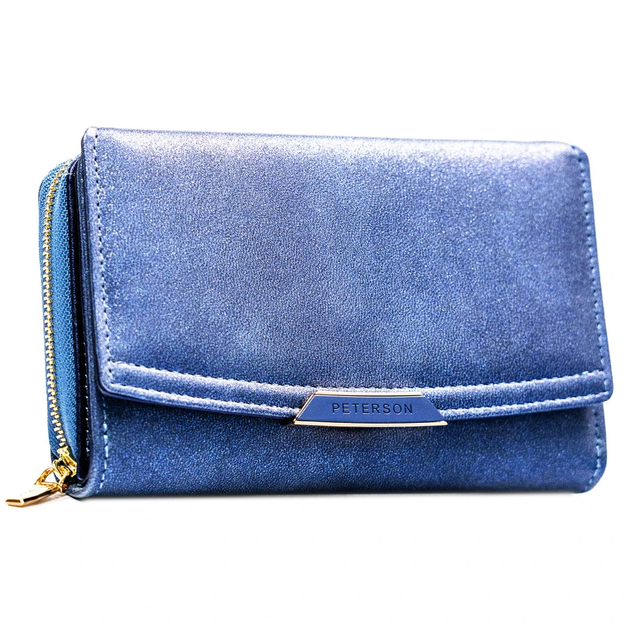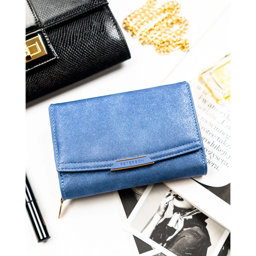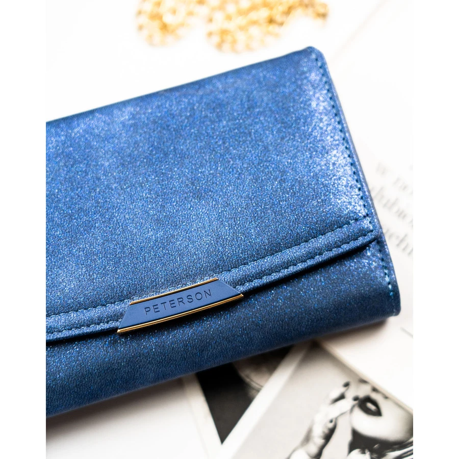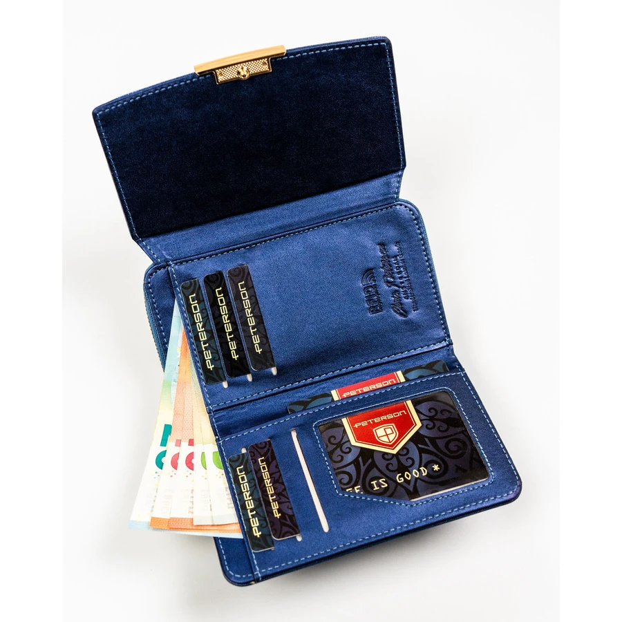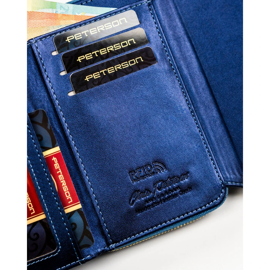 Granatowy portfel damski ze skóry ekologicznej wyposażony w system RFID - Peterson