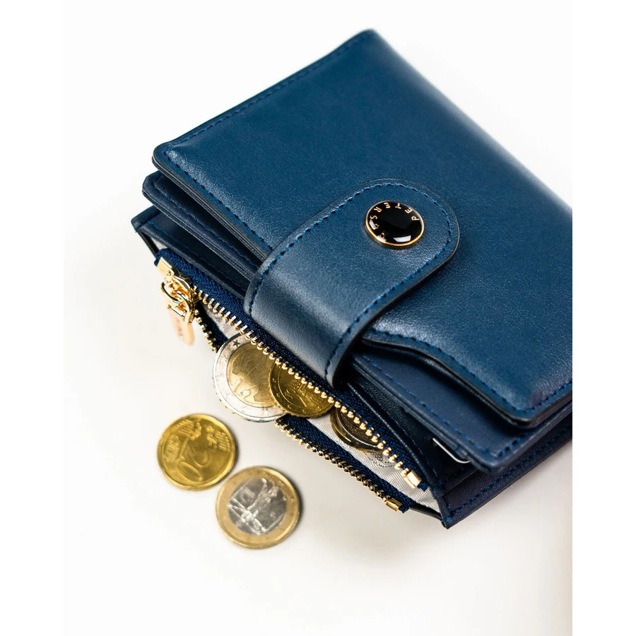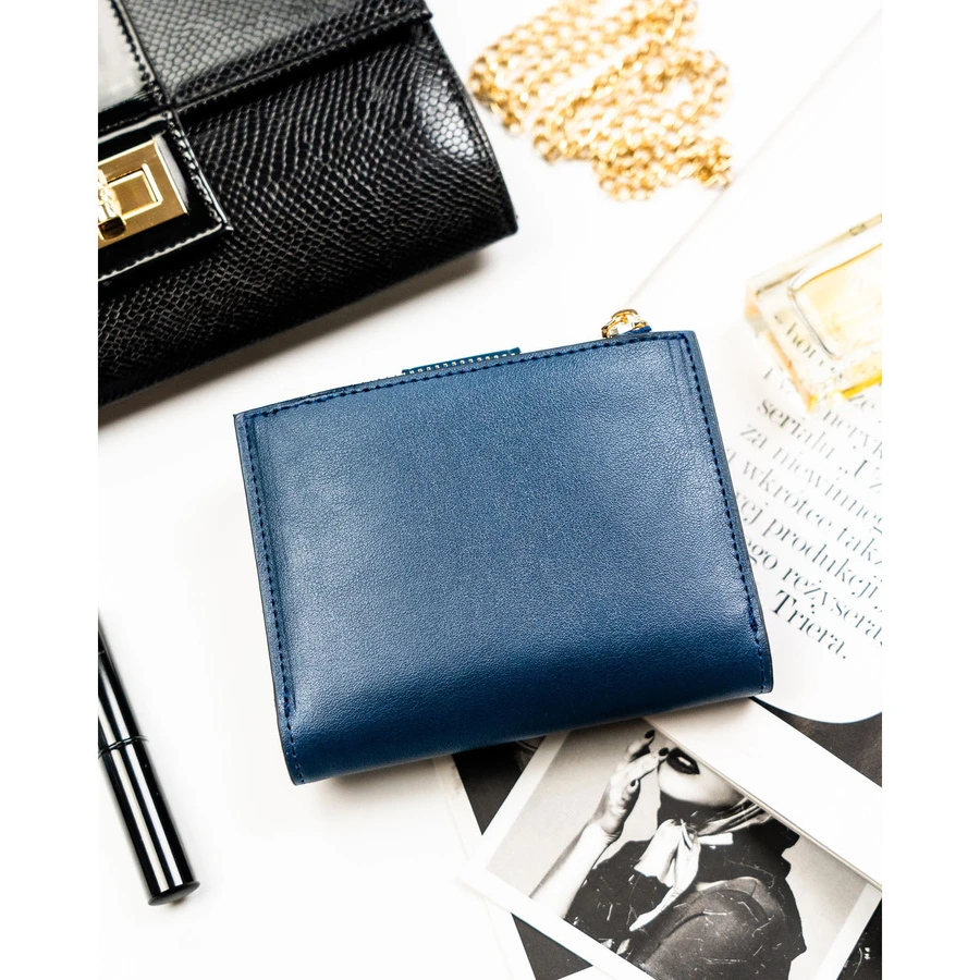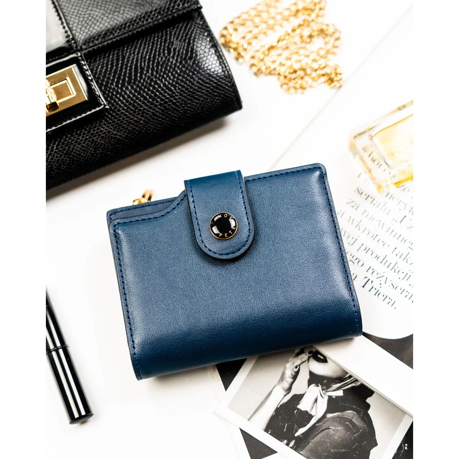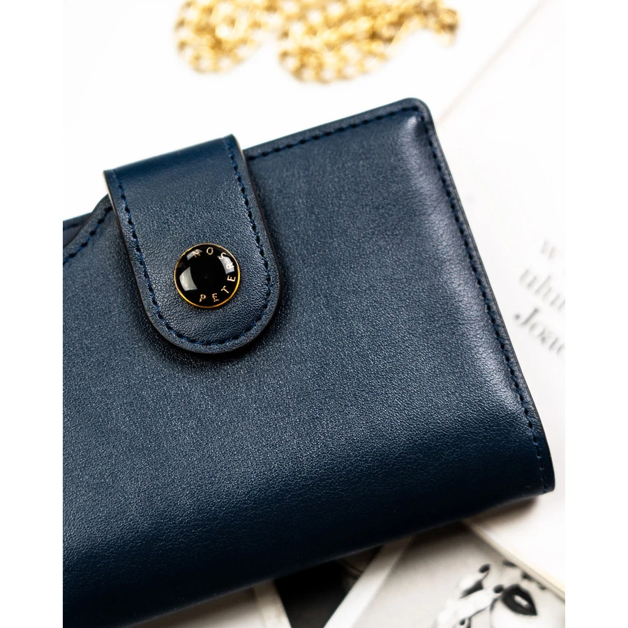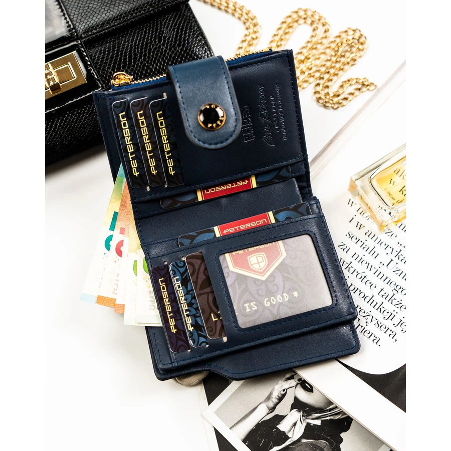 Granatowy portfel damski ze skóry ekologicznej z systemem RFID - Peterson