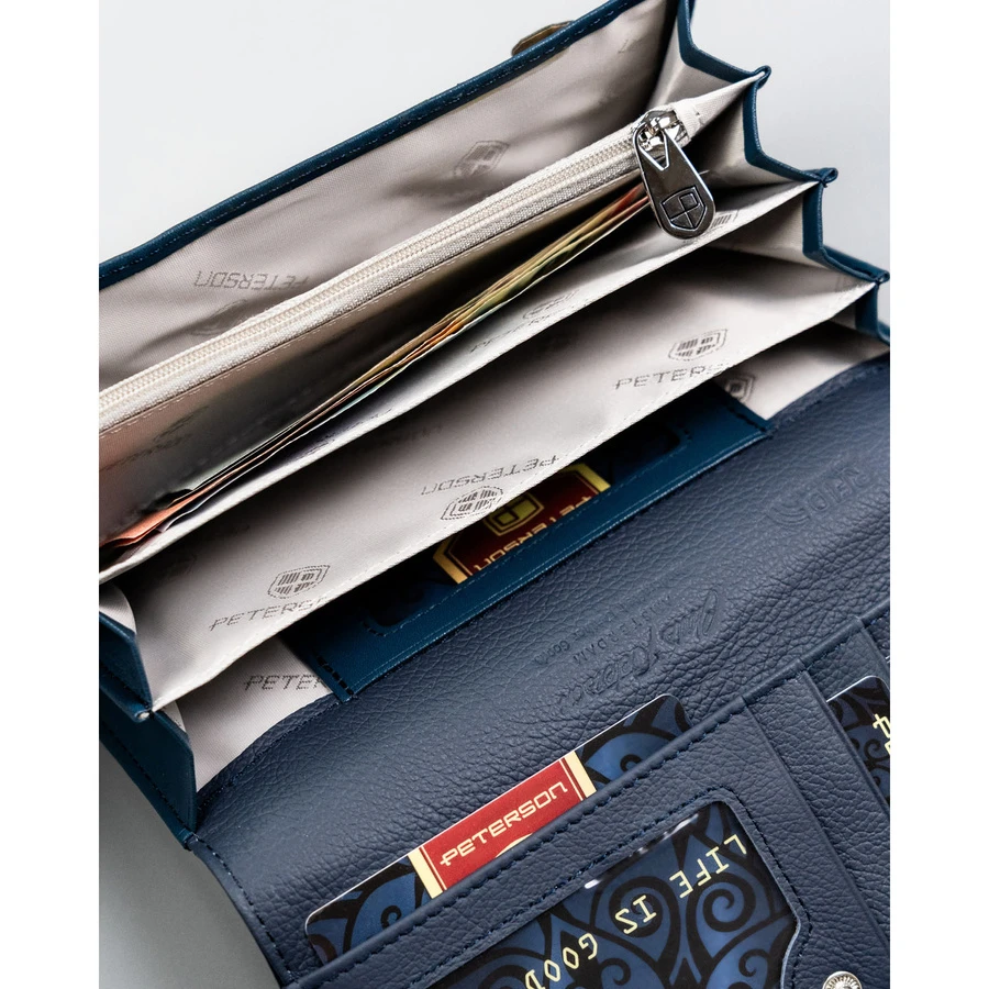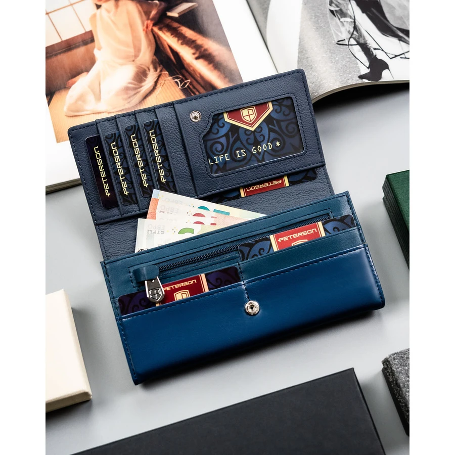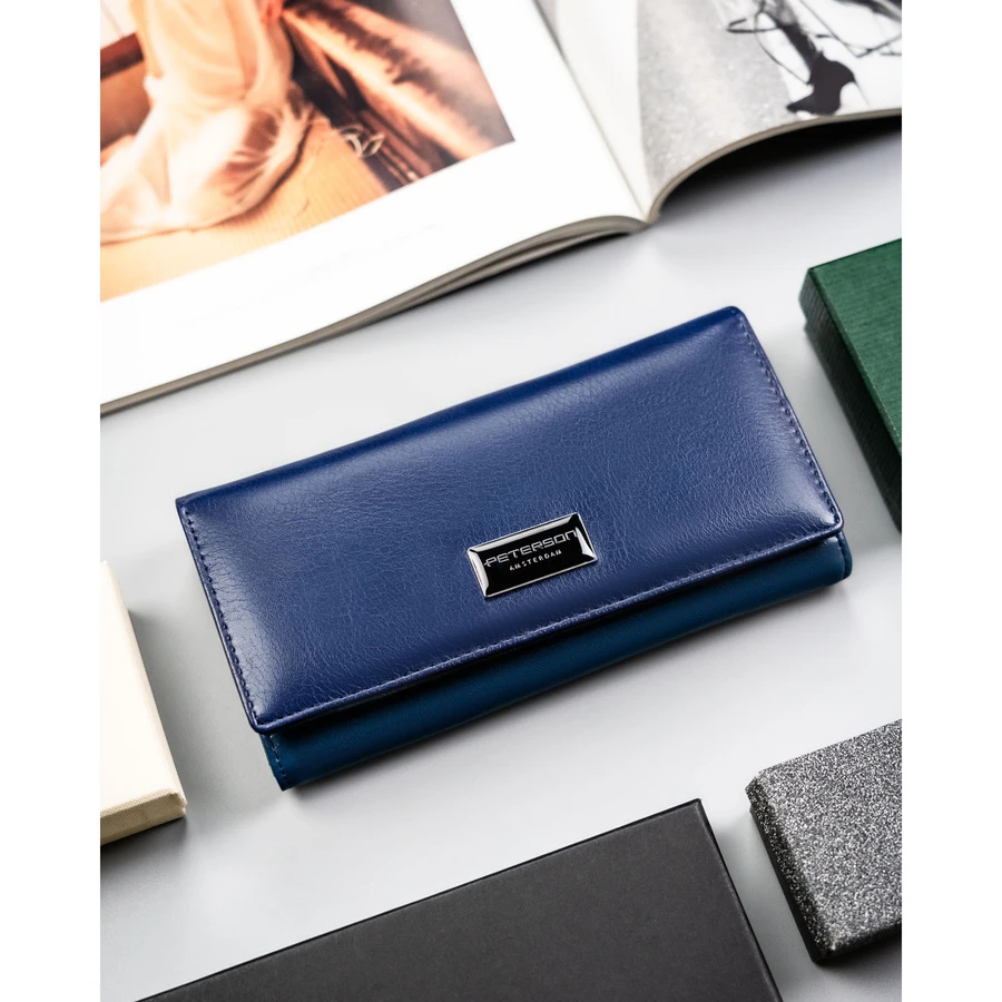 Granatowy portfel damski ze skóry naturalnej i ekologicznej - Peterson | Niua.pl