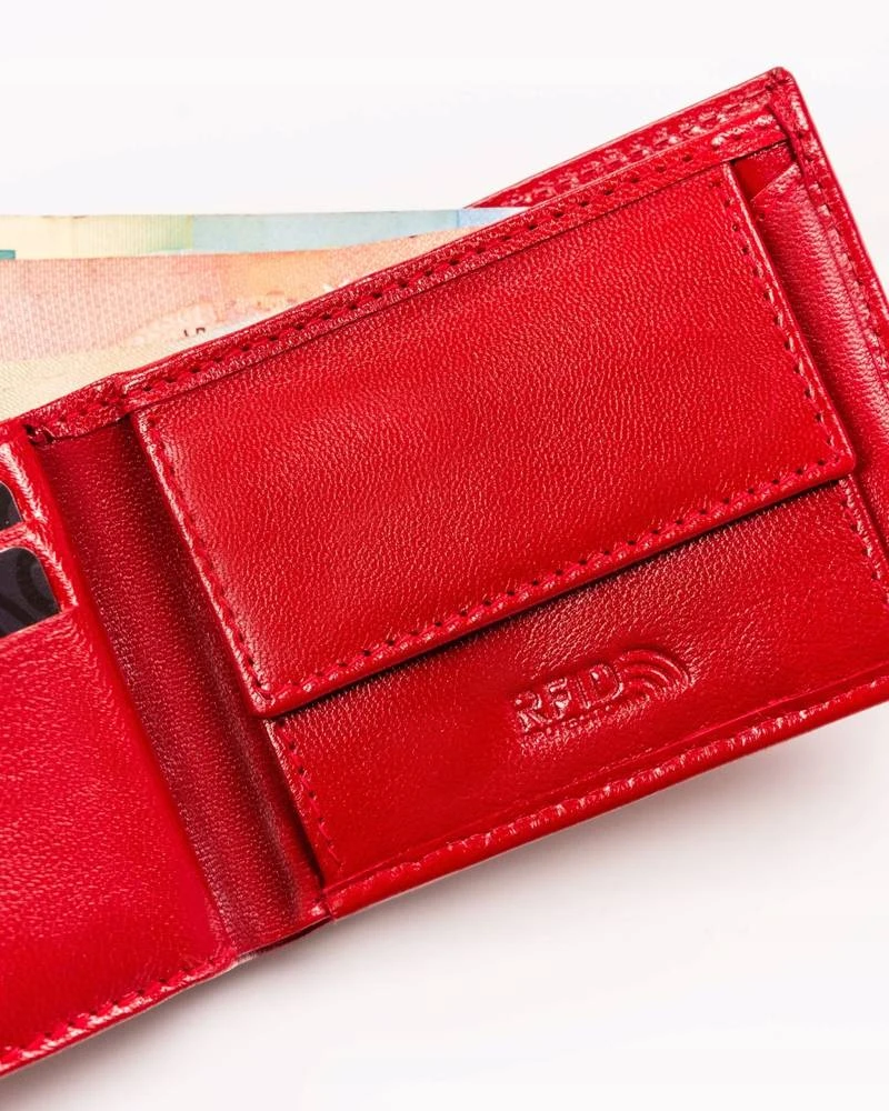 - 1 przegroda na banknoty wyszyta po całej szerokości portfela;
