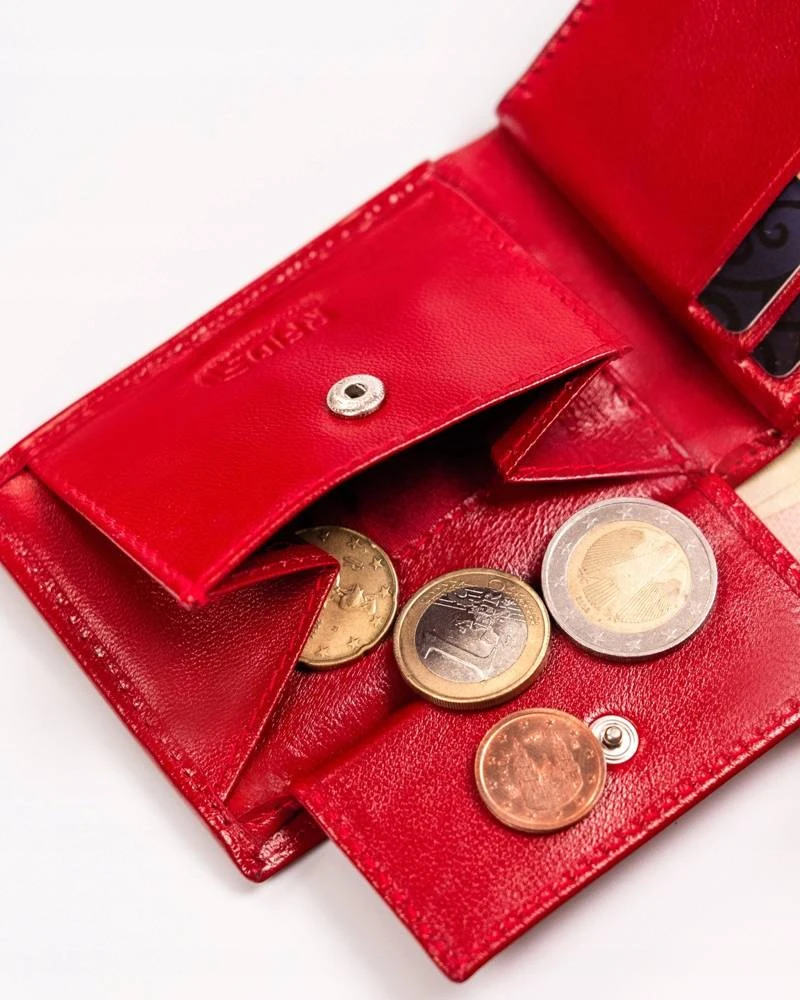 - 1 kieszeń na bilon zamykana na zatrzask.