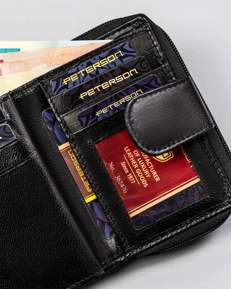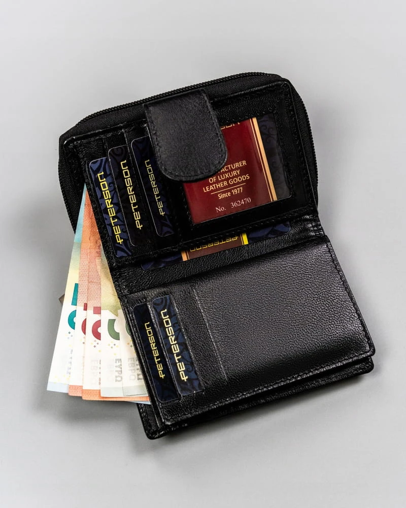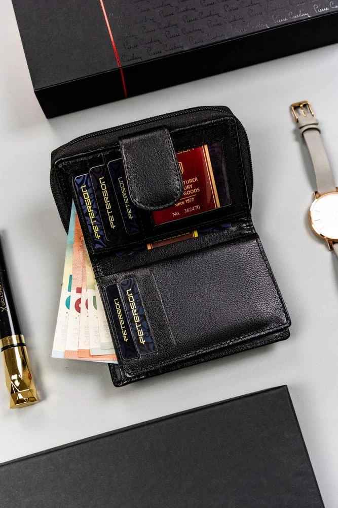 Klasyczny portfel damski na zatrzask i suwak — Peterson