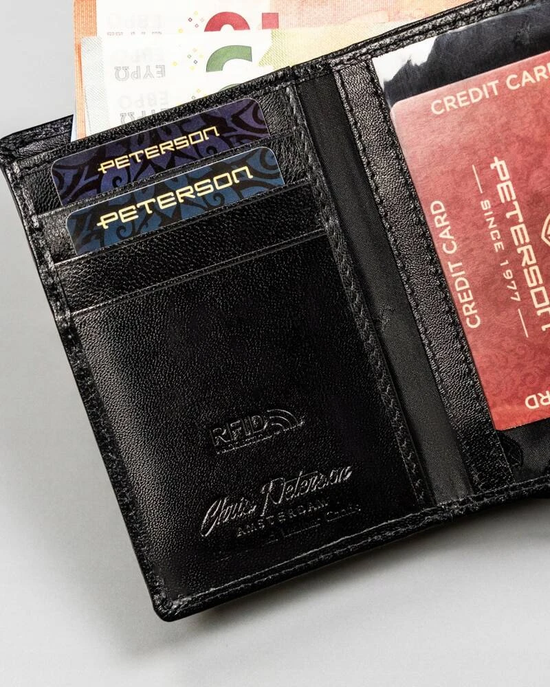 - Wyposażony w system RFID | Technologia ta zabezpiecza kartę w portfelu przed kradzieżą środków z konta;