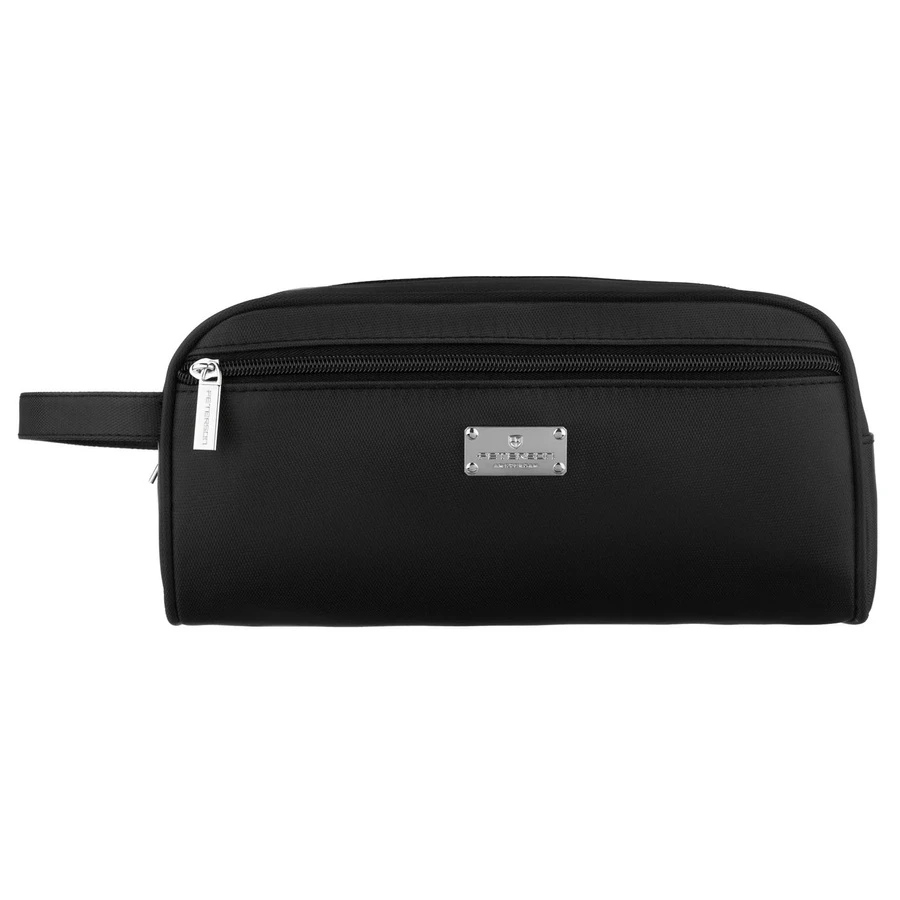 Kosmetyczka z tkaniny syntetycznej w czarnym kolorze, zamykana suwakiem - Peterson