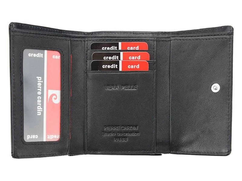 Lakierowany portfel ze skóry naturalnej z portmonetką na bigiel — Pierre Cardin