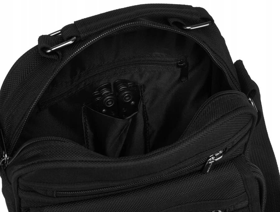 Tył listonoszki zawiera zamykaną bezpiecznym suwakiem kieszeń.