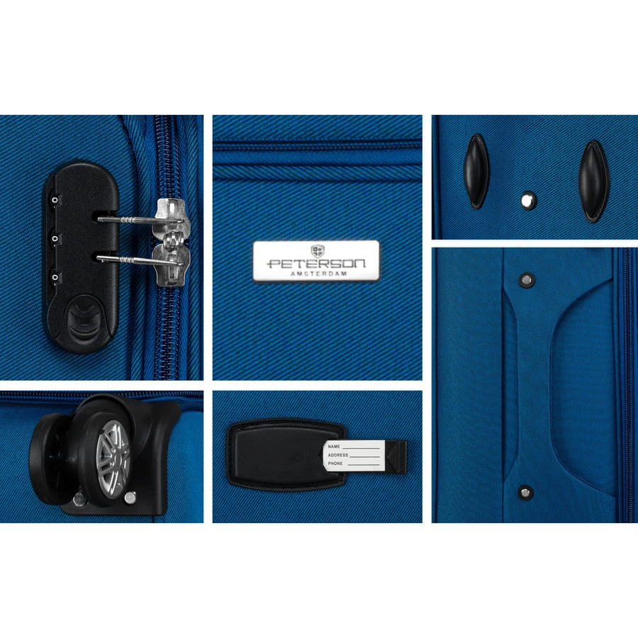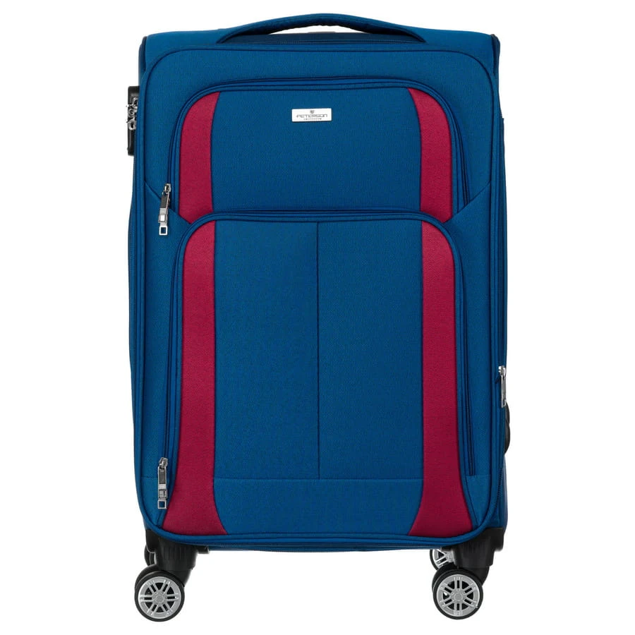 Mała walizka kabinowa z miękkiego materiału poliestrowego w niebiesko-czerwonym kolorze - Peterson