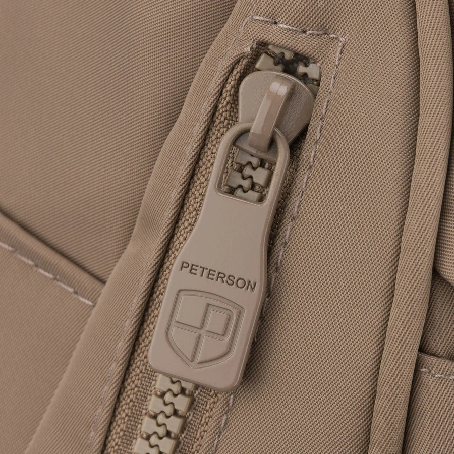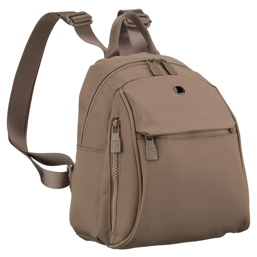 Mały, beżowy plecak damski wykonany z poliestru - Peterson