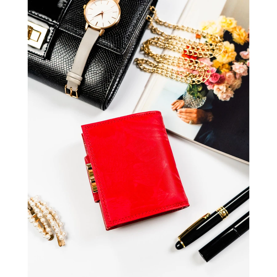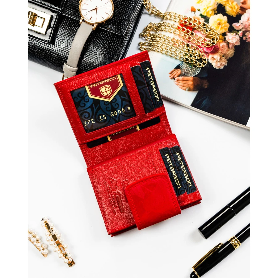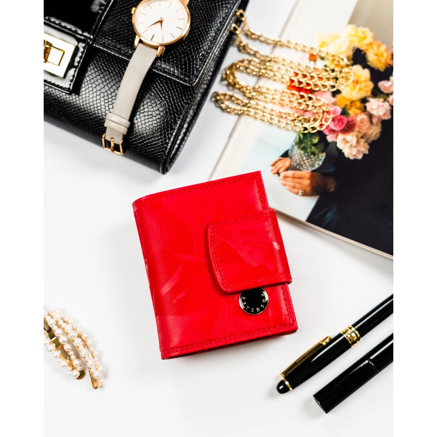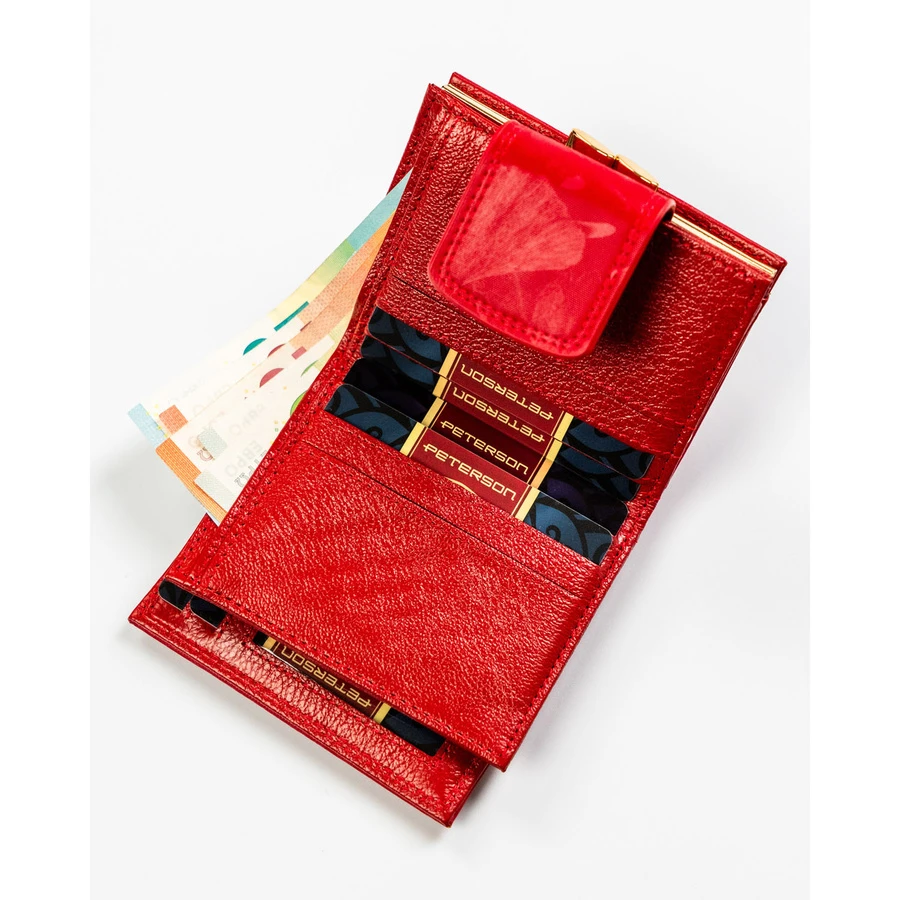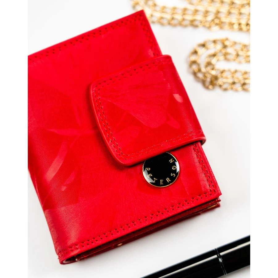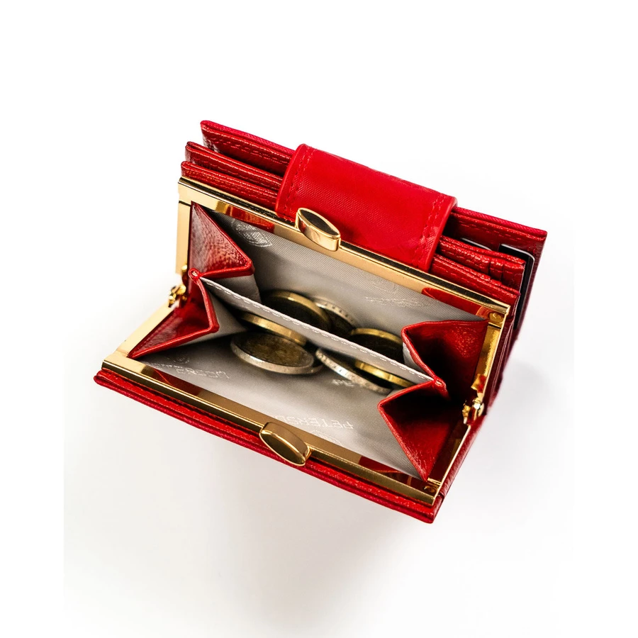Mały, czerwony portfel damski zamykany na bigiel i zatrzask - Peterson