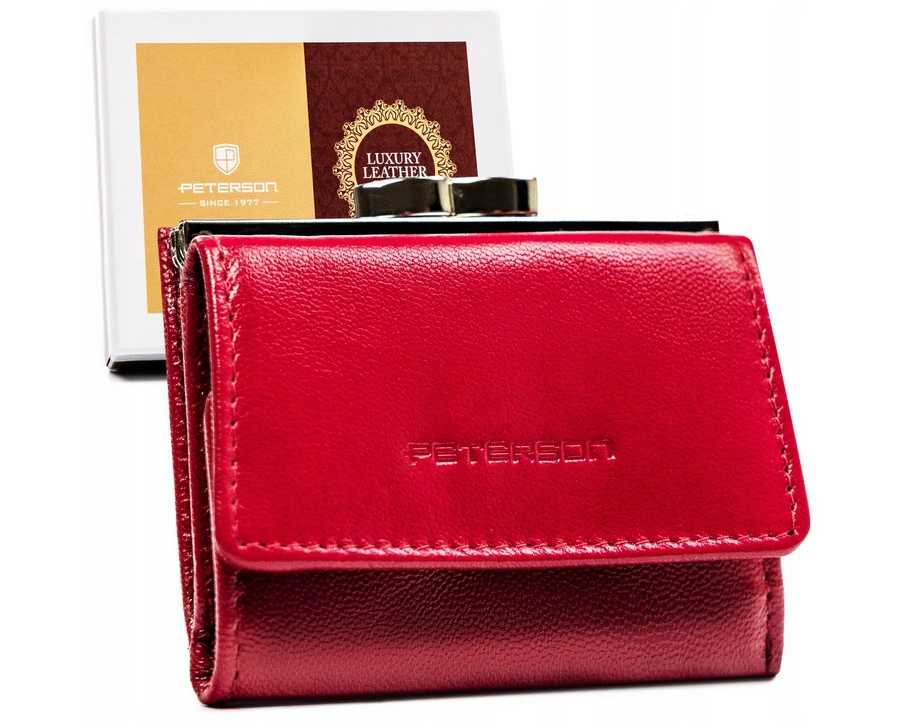 Mały, skórzany portfel damski na zatrzask i bigiel — Peterson