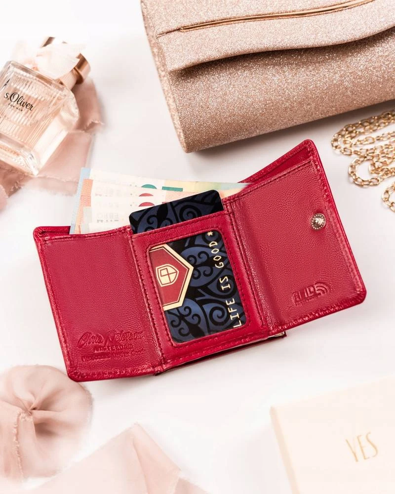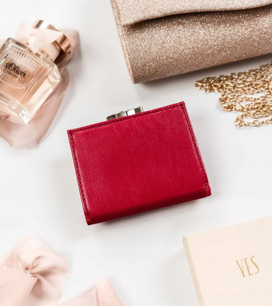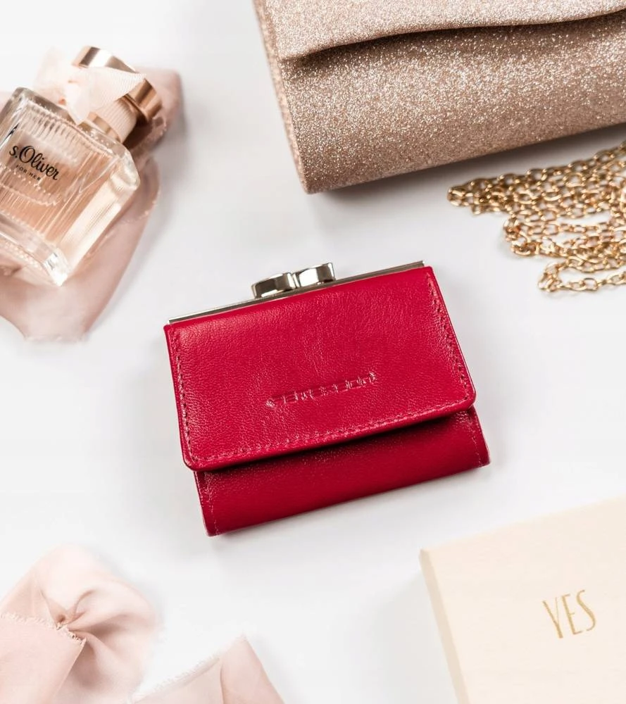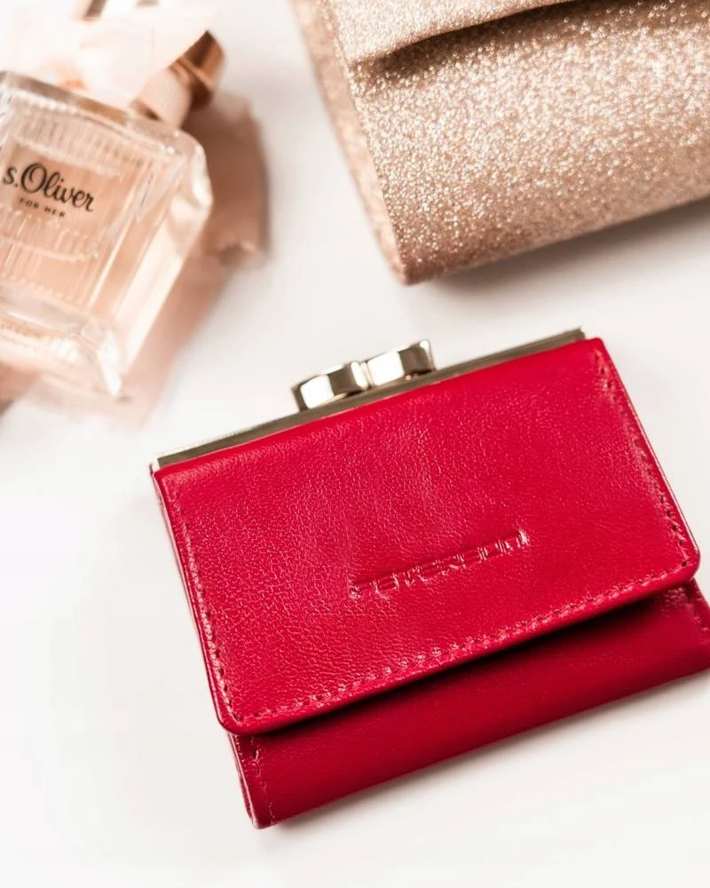 Mały, skórzany portfel damski na zatrzask i bigiel - Peterson