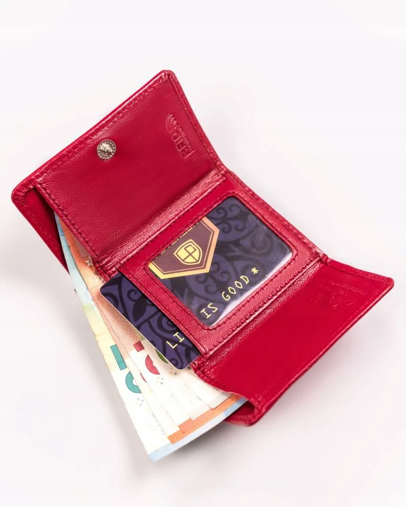Mimo swoich niewielkich rozmiarów, portfel powieści najpotrzebnijsze drobiazgi. Kieszenie na banknoty i monety są odpowiednio duże, aby pomieścić pokaźne ilości pieniędzy.