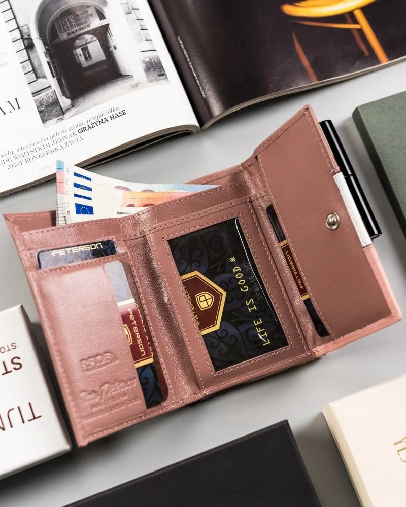 Mały, skórzany portfel damski z systemem RFID — Peterson