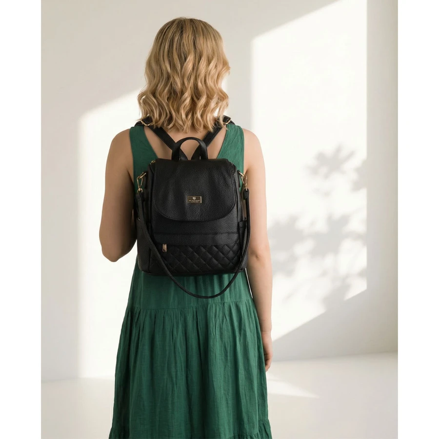 Mały plecak damski czarny ze skóry ekologicznej torebka listonoszka 2w1 miejski - Peterson