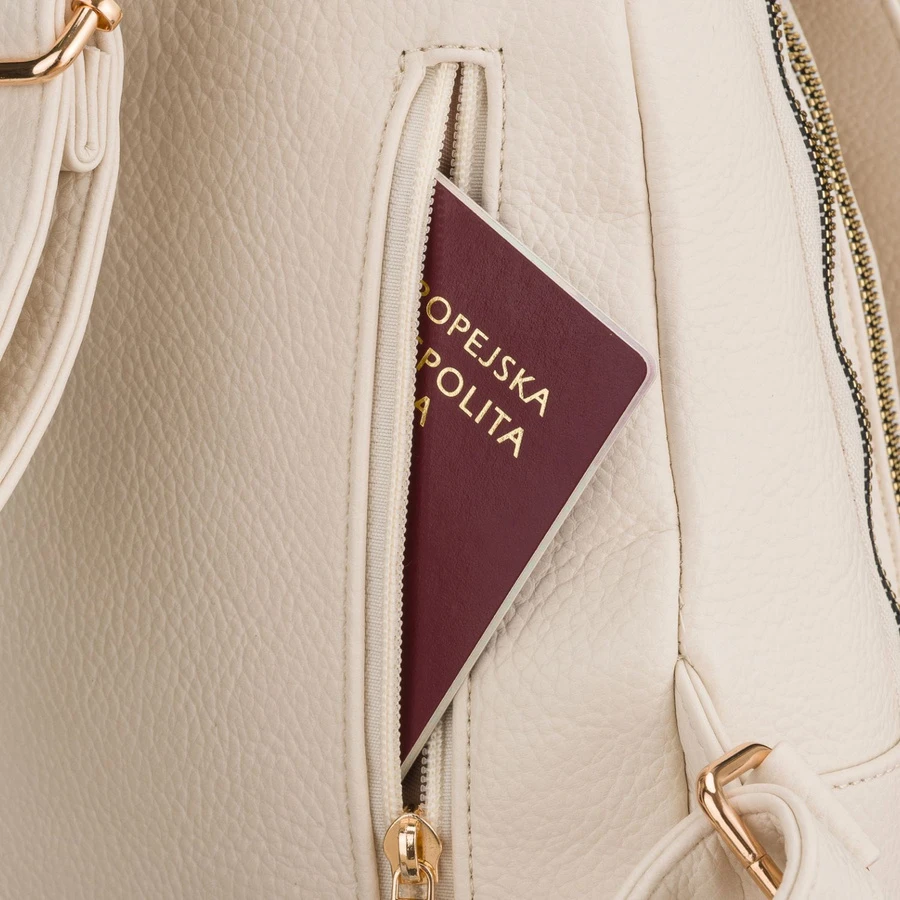 Z tyłu plecaka umieszczono dyskretną kieszeń zapinaną na zamek – idealną na dokumenty lub wartościowe przedmioty.