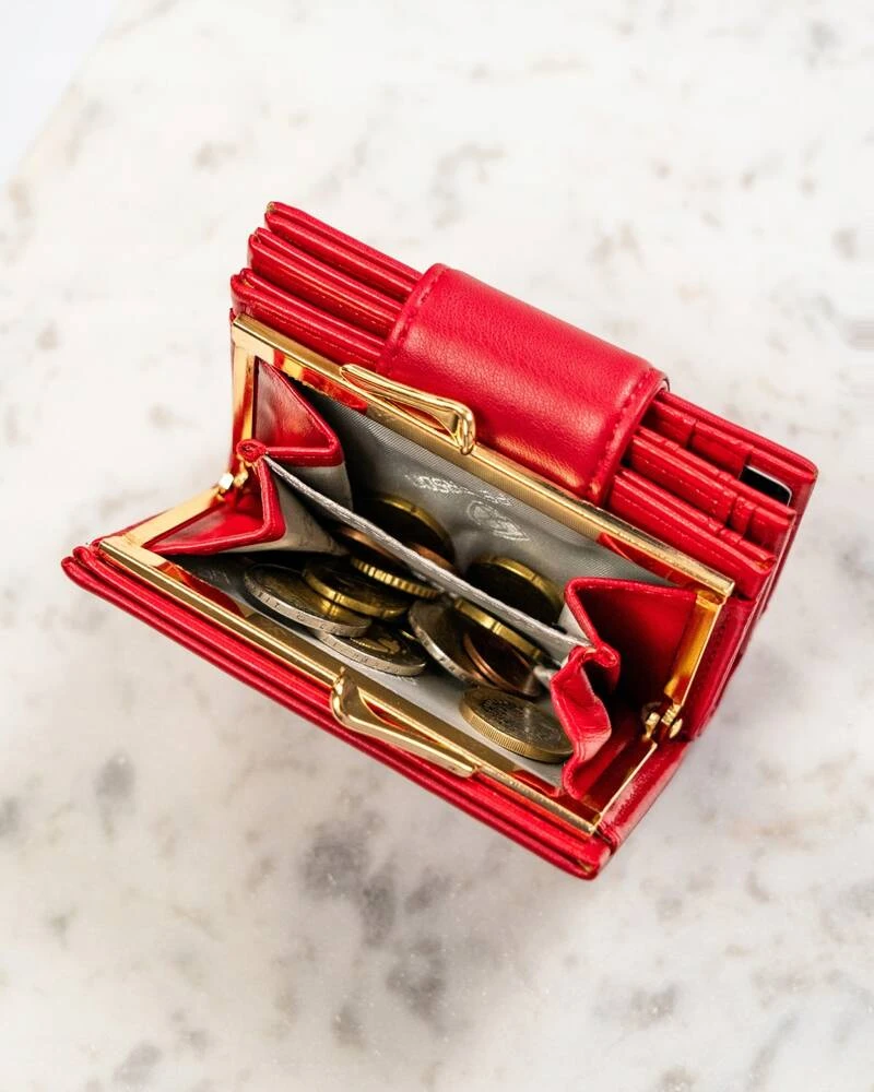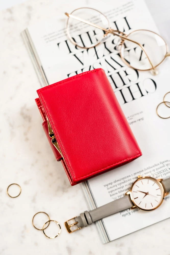 Mały portfel damski ze skóry ekologicznej - Czerwony
