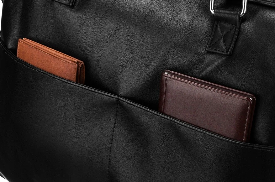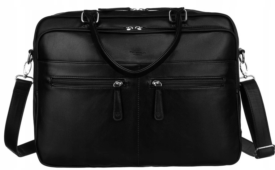 - 3 zasuwane kieszenie na przedniej stronie torby, doskonałe do przechowywania dodatkowych dokumentów i drobiazgów.