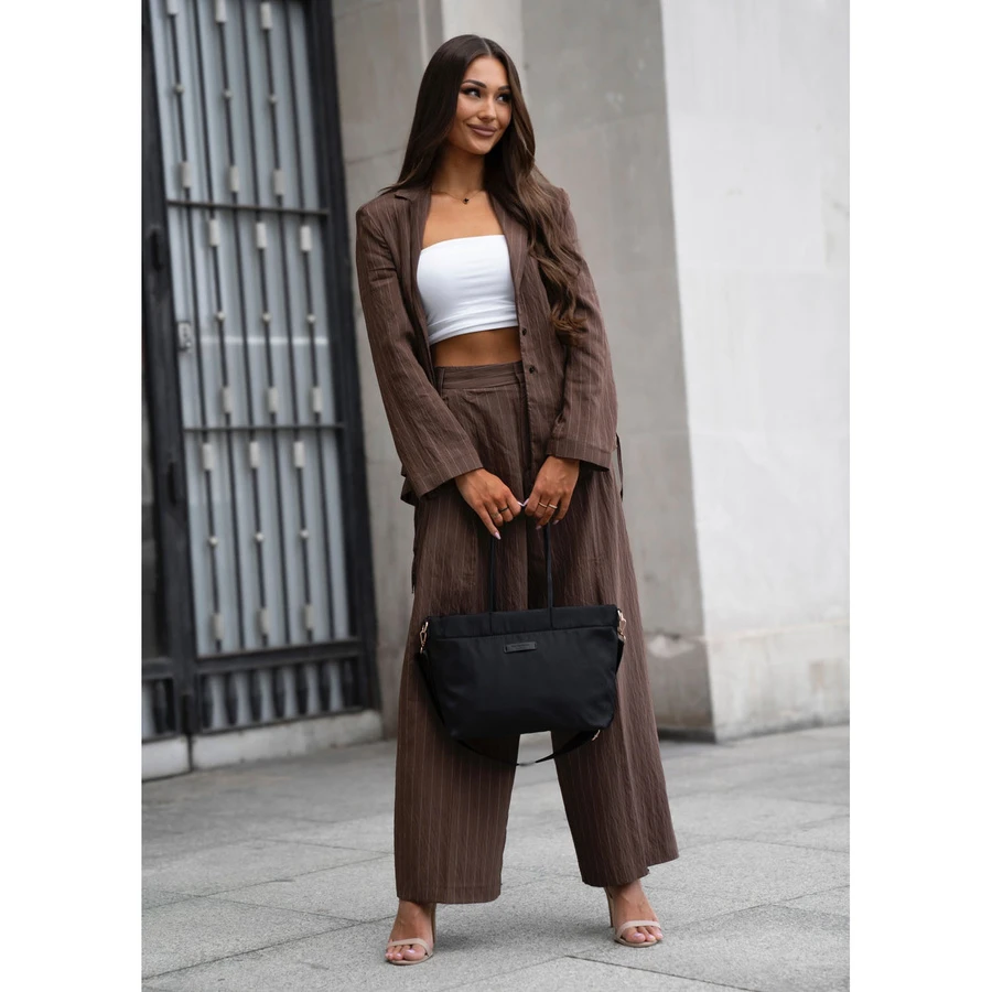 Torebka PETERSON została zaprojektowana tak, aby zapewniać maksymalny komfort noszenia niezależnie od sytuacji. Wysokie, smukłe uchwyty pozwalają wygodnie przewiesić ją przez ramię lub trzymać w dłoni, a dołączony, regulowany pasek na karabińczykach daje możliwość noszenia jej również crossbody – co szczególnie sprawdza się w biegu po mieście.