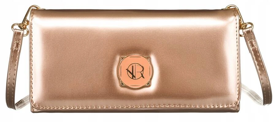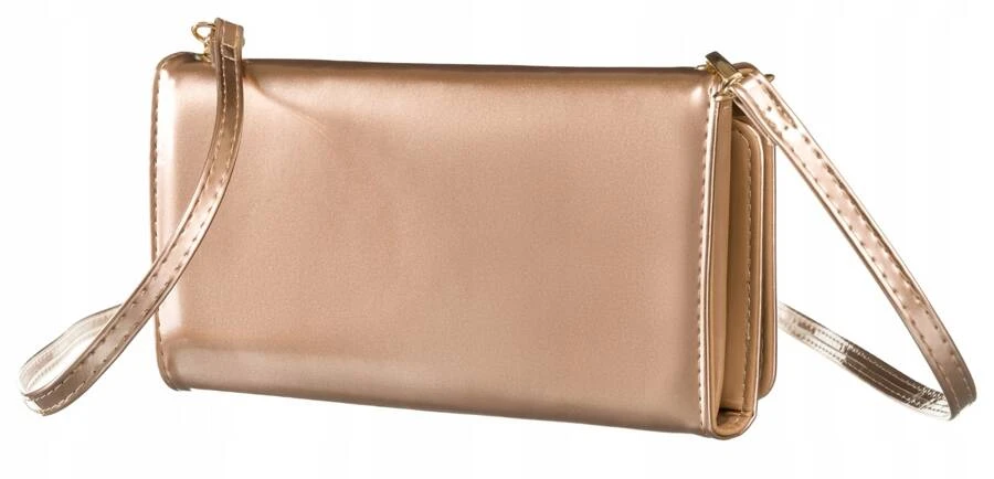 Mini torebka-kopertówka w złotym kolorze z kieszenią na telefon - Rovicky