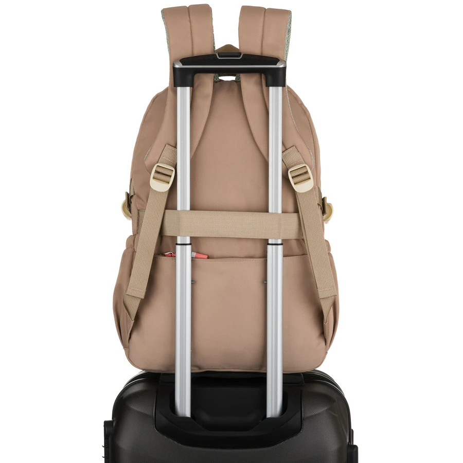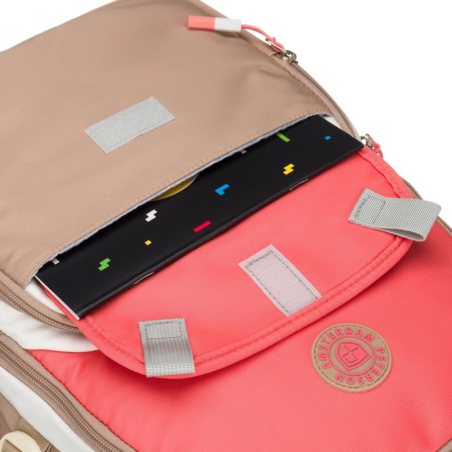 Młodzieżowy plecak szkolny z poliestru w beżowo-różowym kolorze z przegrodą na laptopa - Peterson