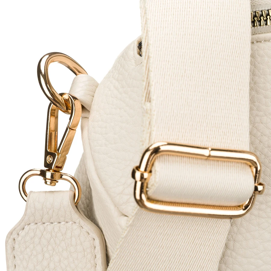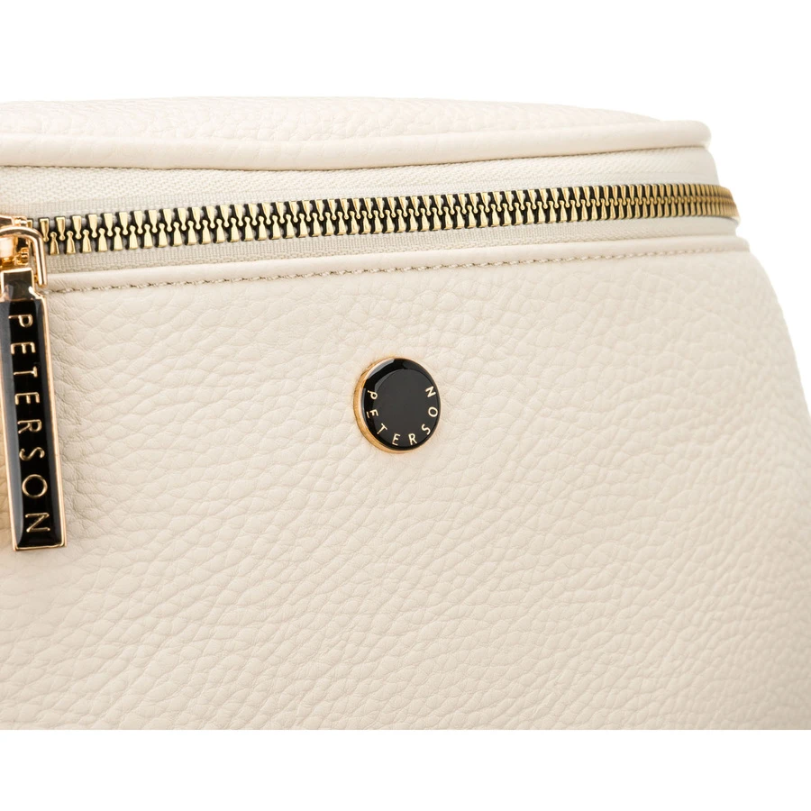 Modna, jasnobeżowa nerka damska ze skóry ekologicznej - Peterson
