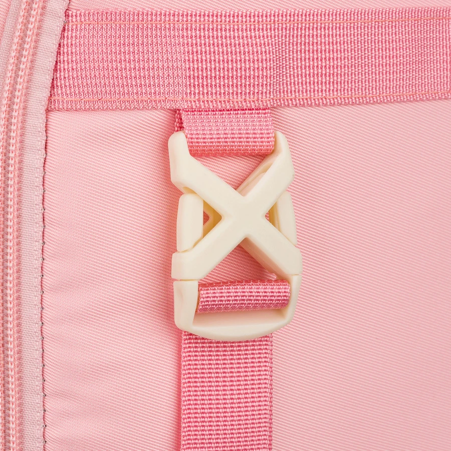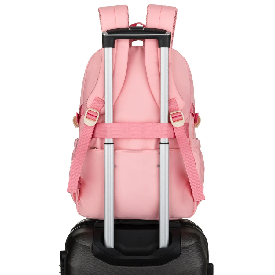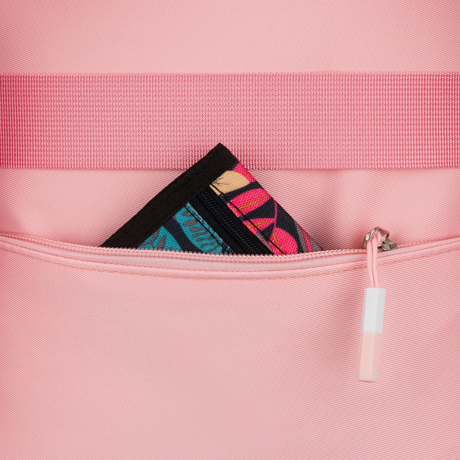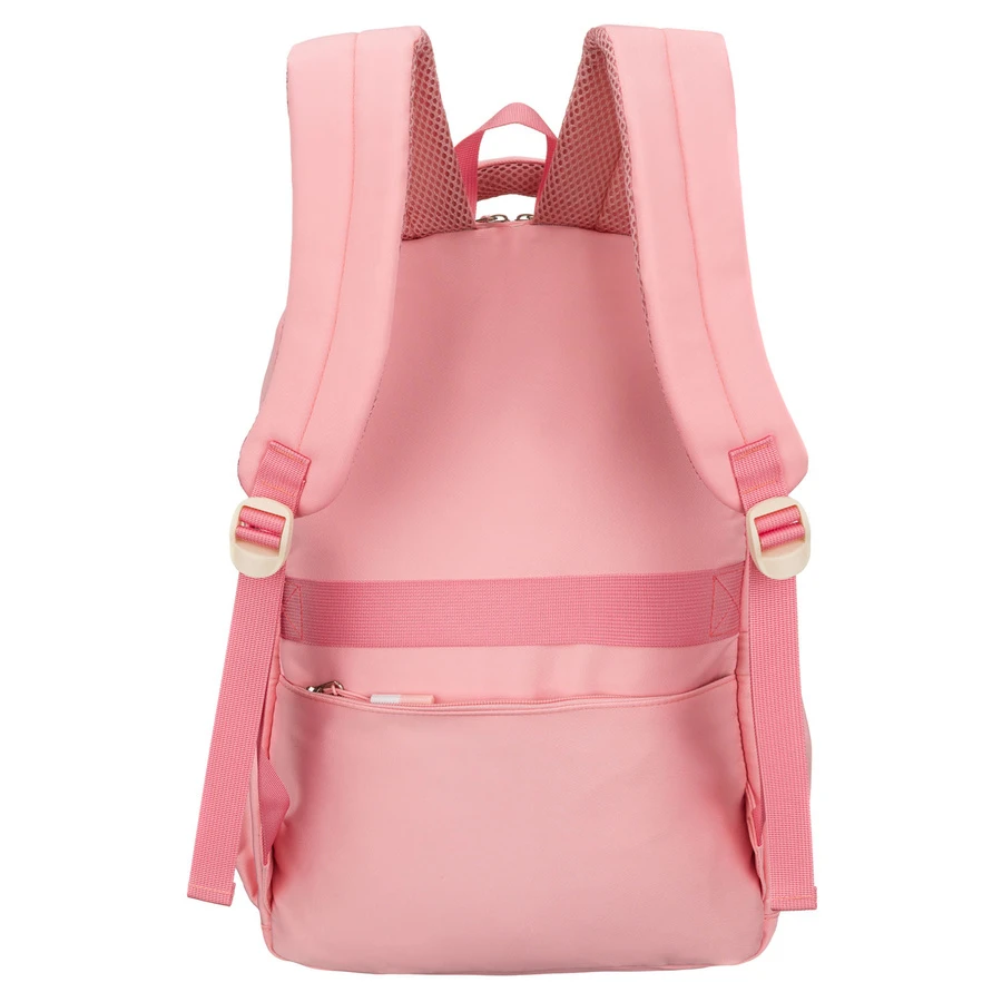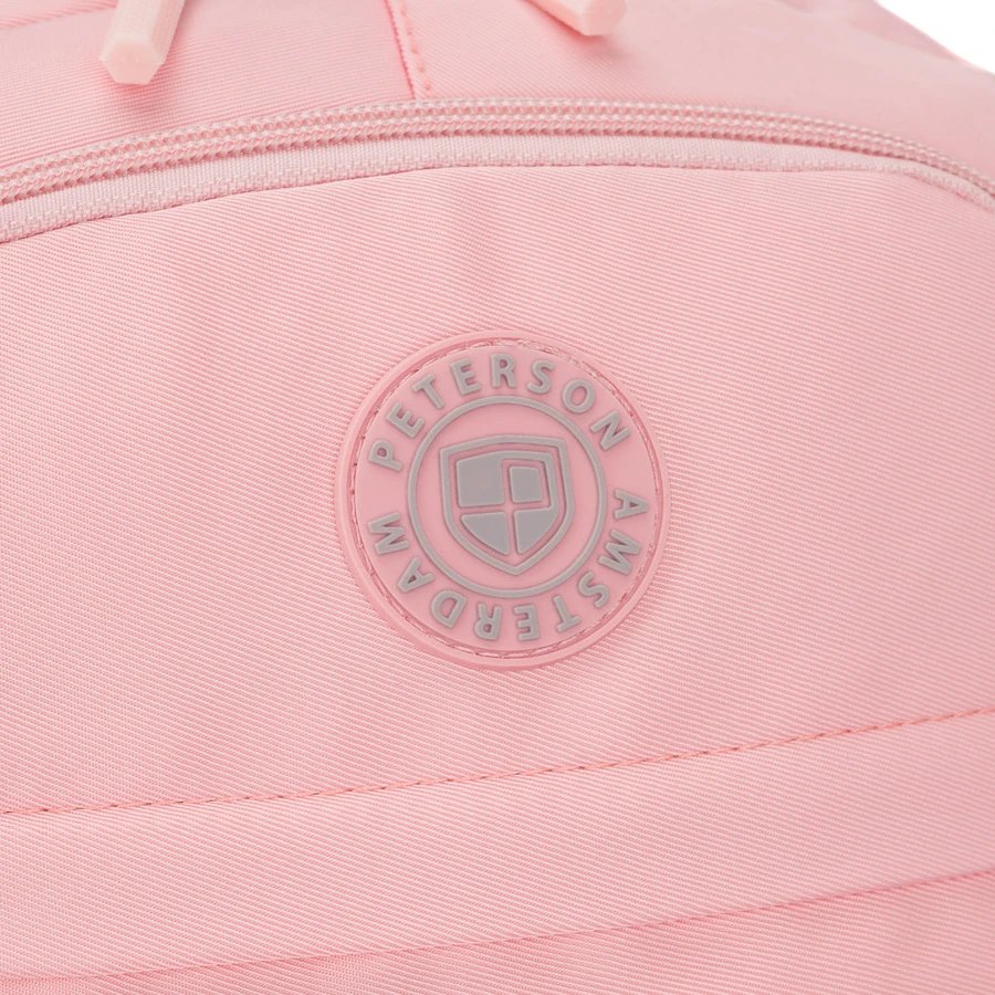 Modny plecak szkolny z poliestru w różowym kolorze, zawieszony na regulowanych szelkach - Peterson
