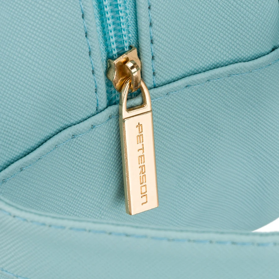 Niebieska kosmetyczka z tkaniny syntetycznej wyposażona w przezroczysty panel - Peterson