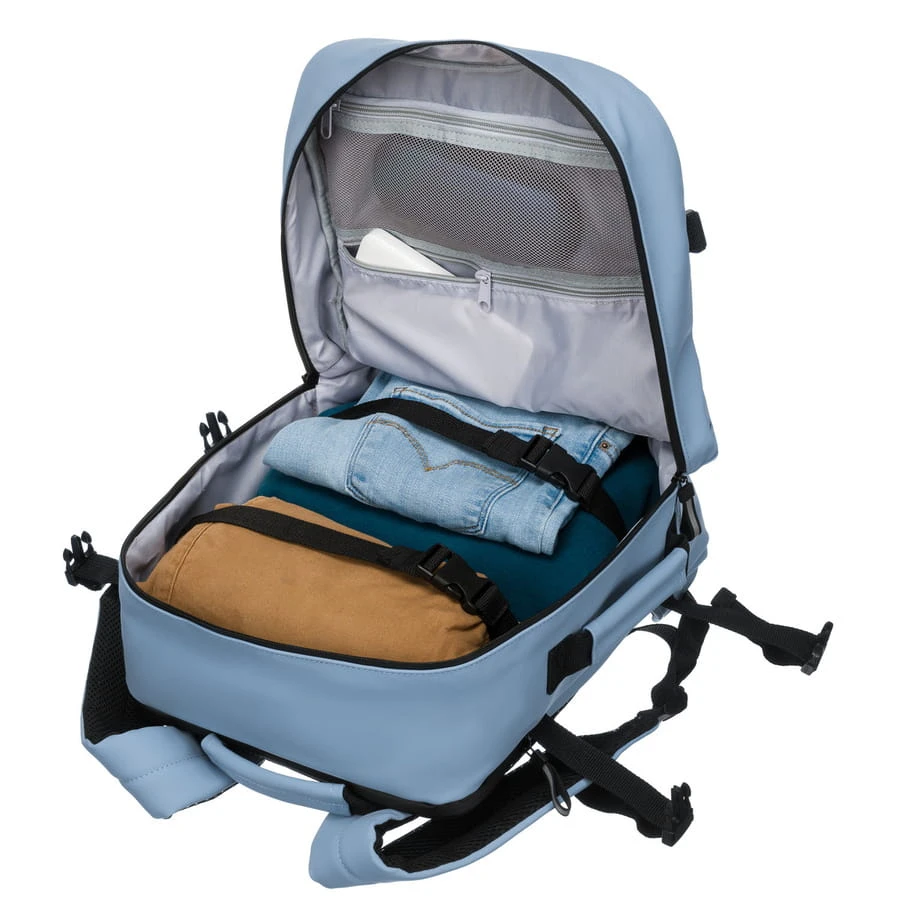 Pojemność plecaka została starannie zaprojektowana, by zmieścić wszystko, co niezbędne, a jednocześnie spełniać wymogi bagażu podręcznego linii Wizzair.